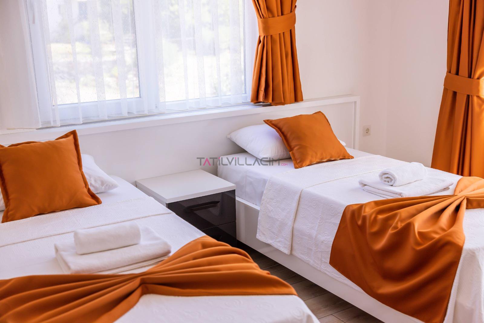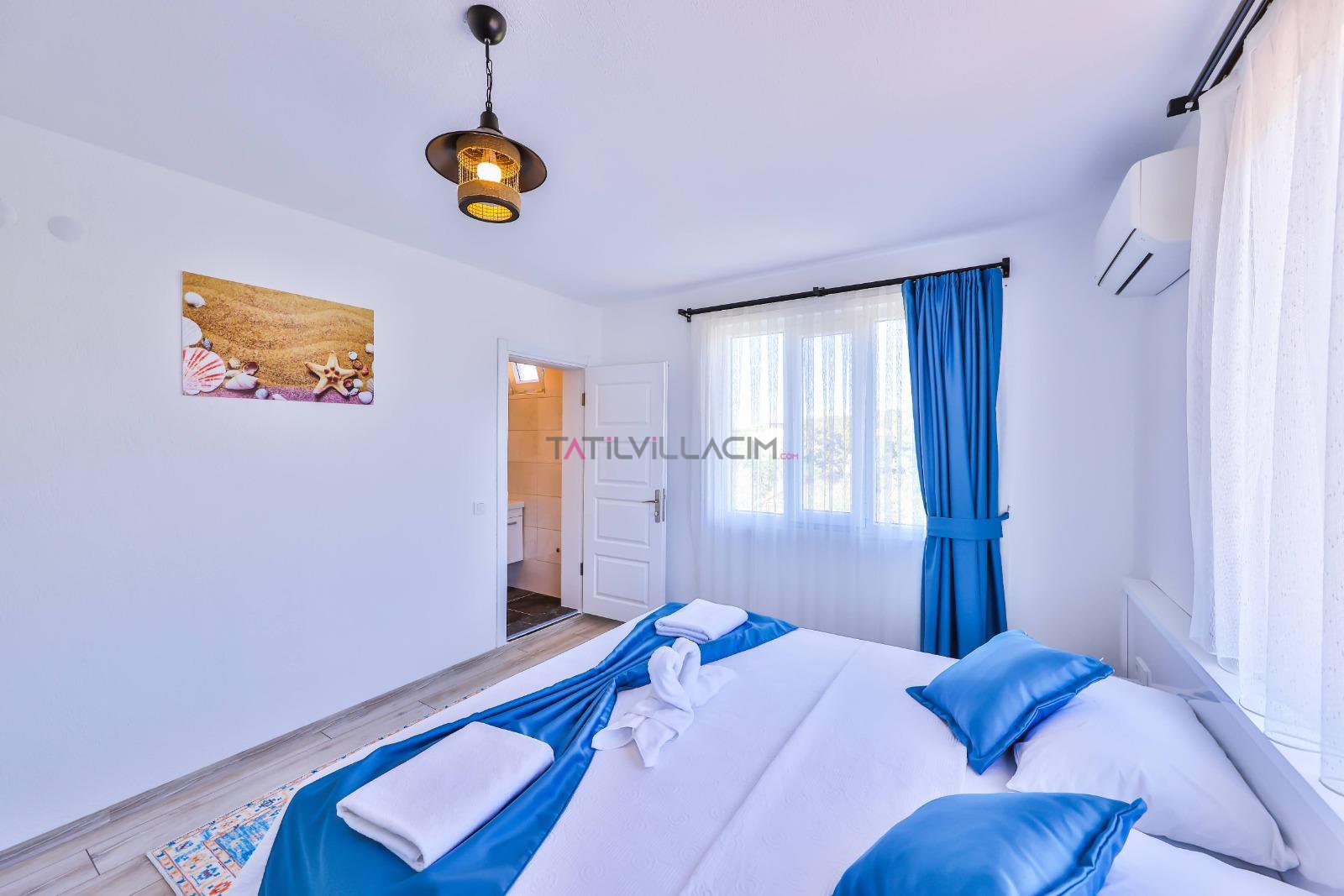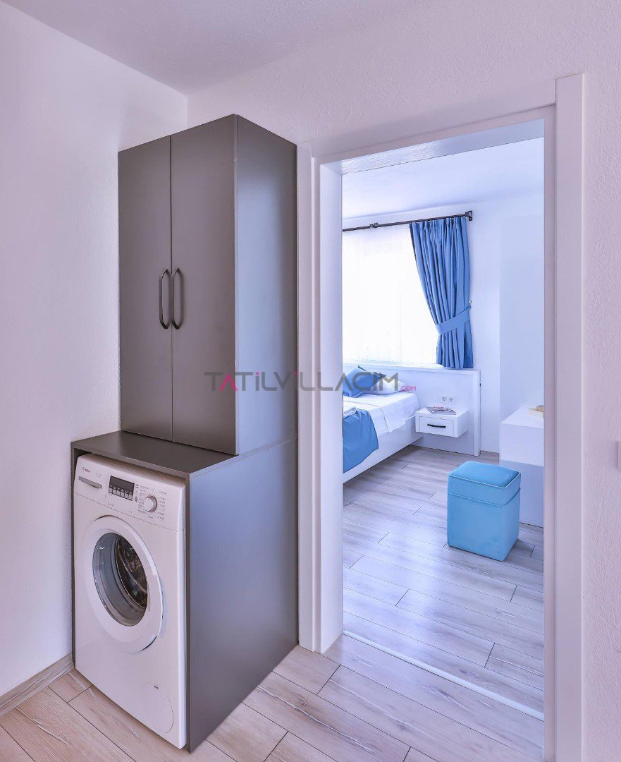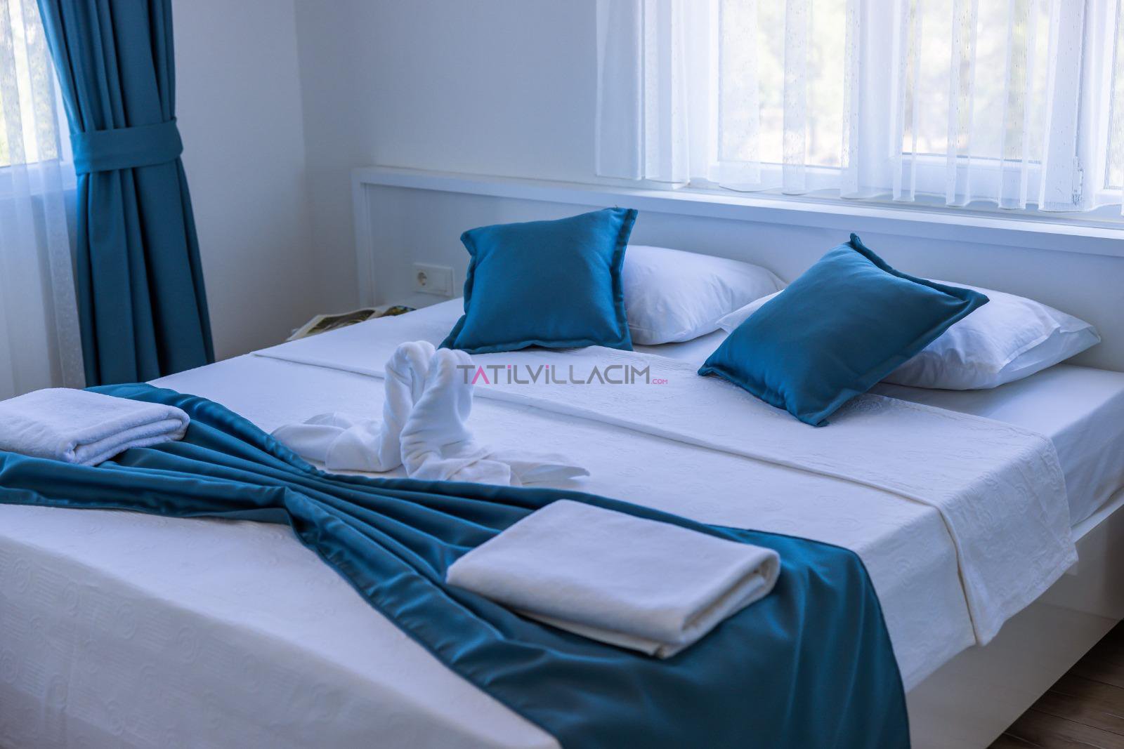 İki yatak odasıyla toplam 4 kişilik konaklama kapasitesine sahip olan villamız, modern çizgilerle tasarlanmış ferah yaşam alanlarıyla konforu ön planda tutar. Her detayı özenle düşünülmüş iç mekânlar, tatiliniz boyunca kendinizi evinizde hissetmenizi sağlar.