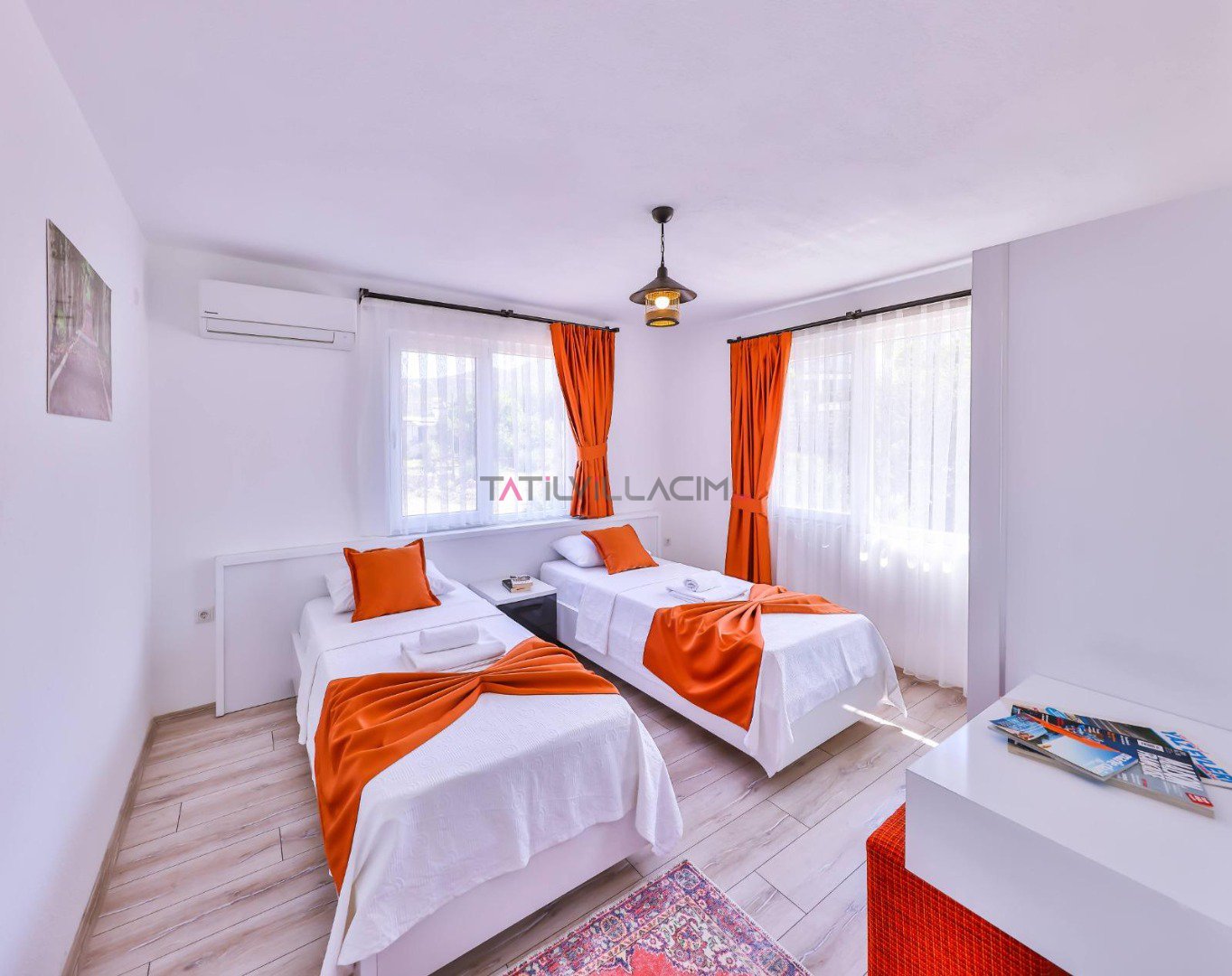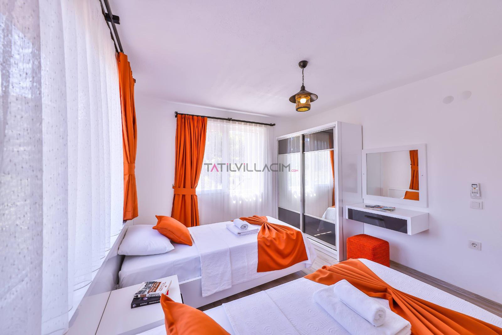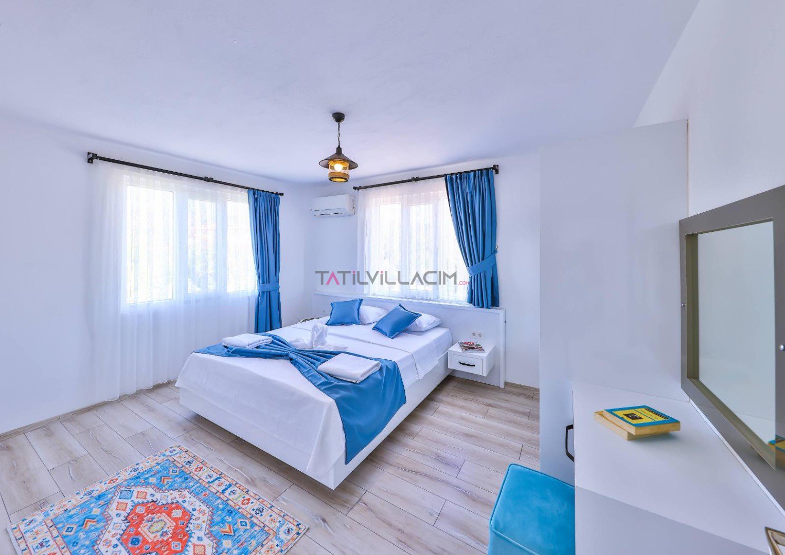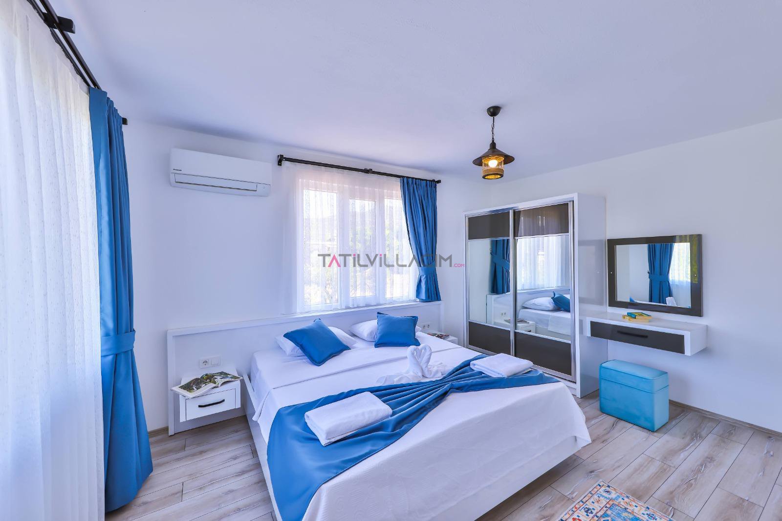 İki yatak odasıyla toplam 4 kişilik konaklama kapasitesine sahip olan villamız, modern çizgilerle tasarlanmış ferah yaşam alanlarıyla konforu ön planda tutar. Her detayı özenle düşünülmüş iç mekânlar, tatiliniz boyunca kendinizi evinizde hissetmenizi sağlar.
