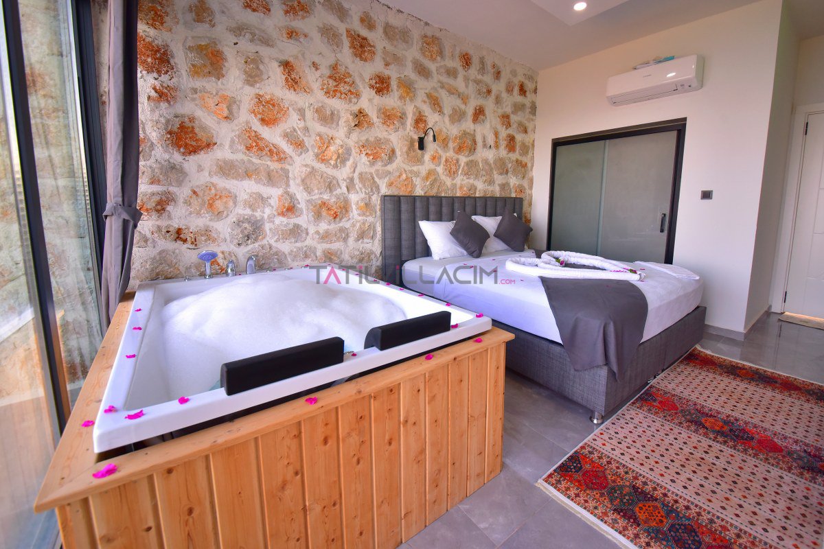 Villa Özellikleri 1 Çift Kişilik Yatak Barbekü (Mangal) Doğa Full Eşyalı ve Mobilyalı Özel Havuz Özel Yüzme Havuzu Jakuzi Deniz Manzarası Barbekü Geniş Ailelere Uygun Doğa Manzaralı Bahçeli