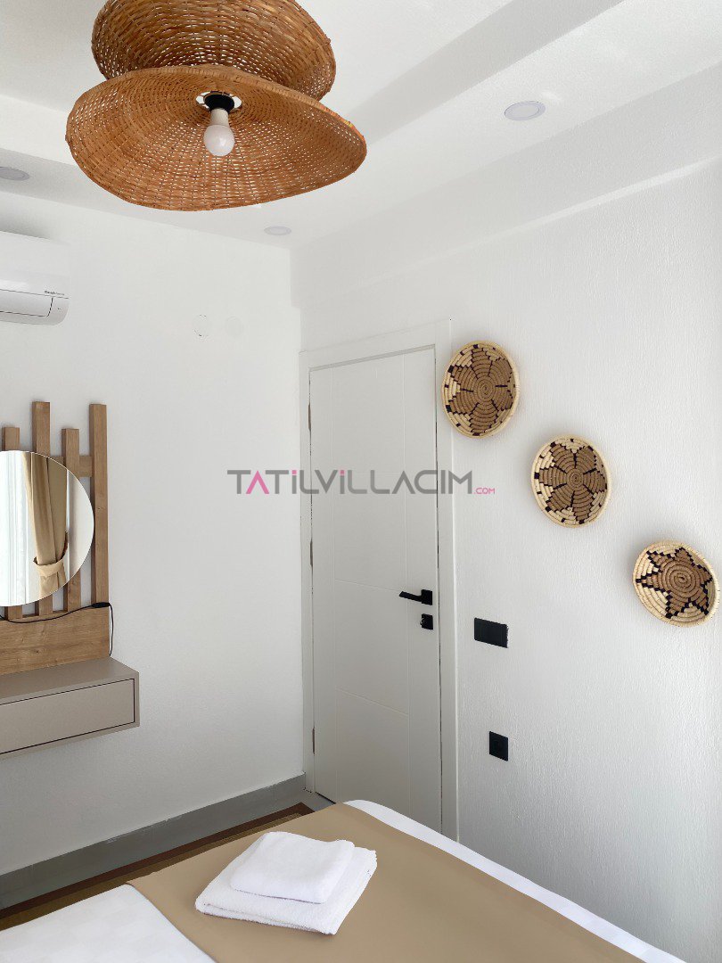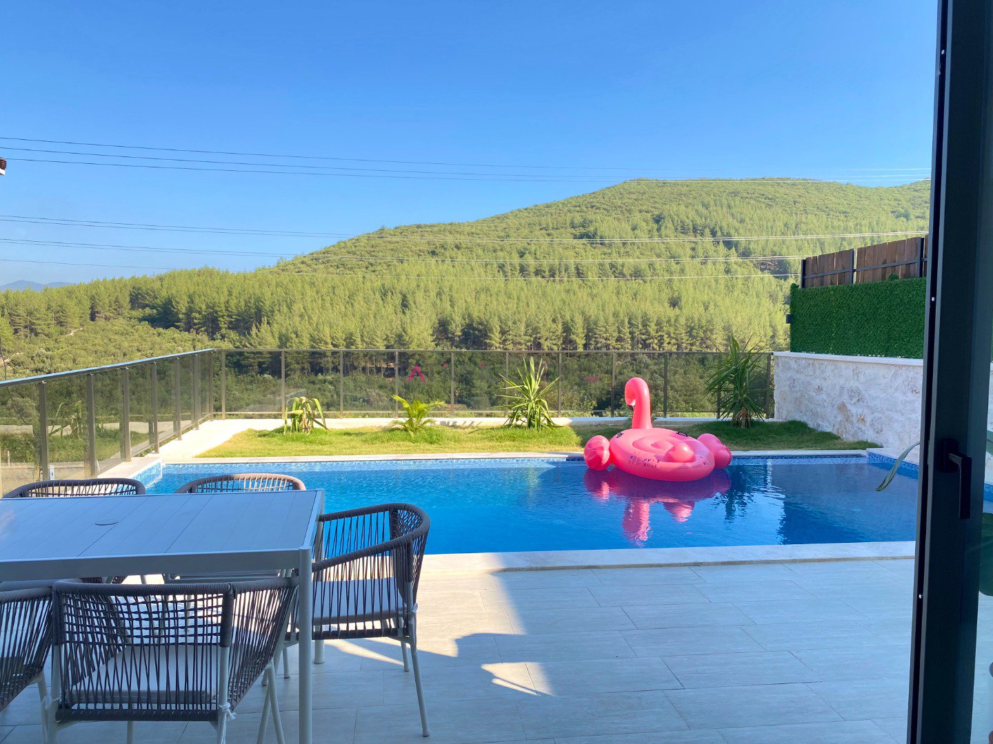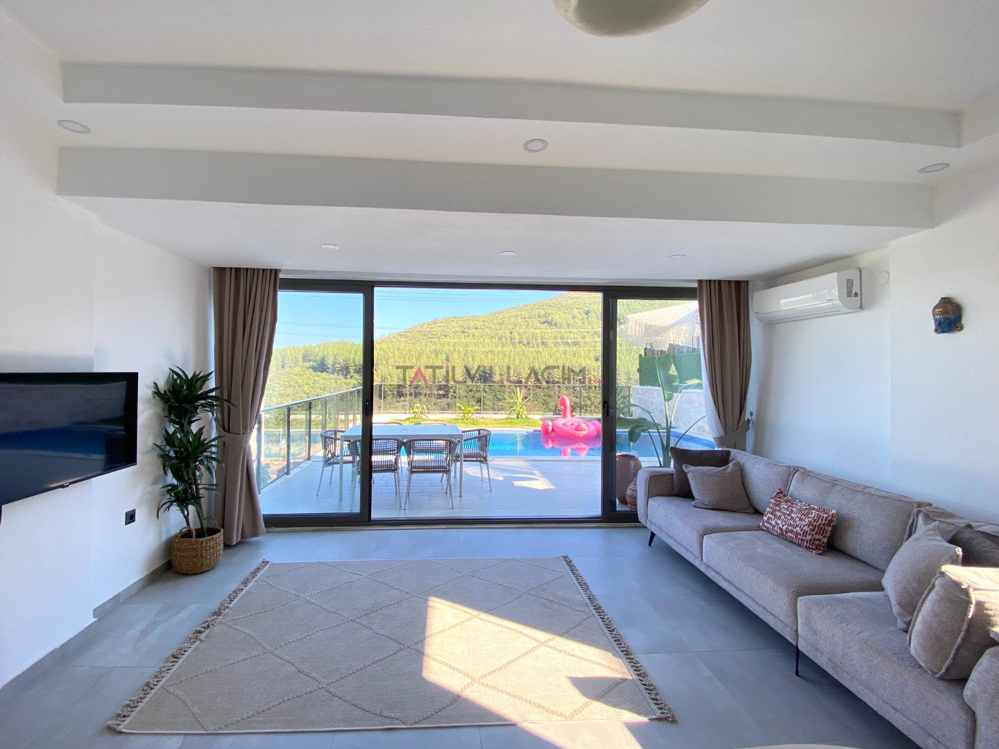 Villa Özellikleri Barbekü (Mangal) Klima Özel Bahçeli Özel Havuz Özel Yüzme Havuzu Full Eşyalı ve Mobilyalı Barbekü Geniş Ailelere Uygun Doğa Manzaralı Bahçeli