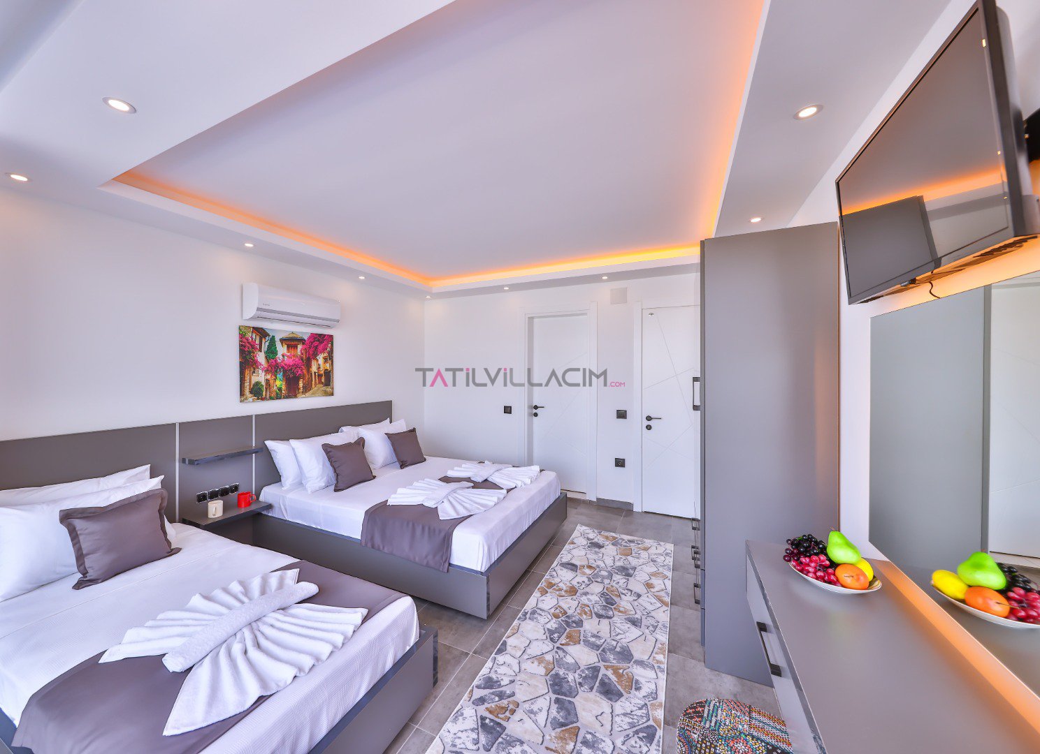 Kalkan Yeşilköy'de bulunan Villa Pika Trio 2 yatak odası ile 5 kişi kapasiteli tatil villamız. Havuz alanı korunaklı olup, dışarıdan görünmemektedir.Ana yatak odasında jakuziye sahip villamızın ayrıca bahçesinde masa tenisi ve minik bir çocuk oyun parkı bulunmaktadır.