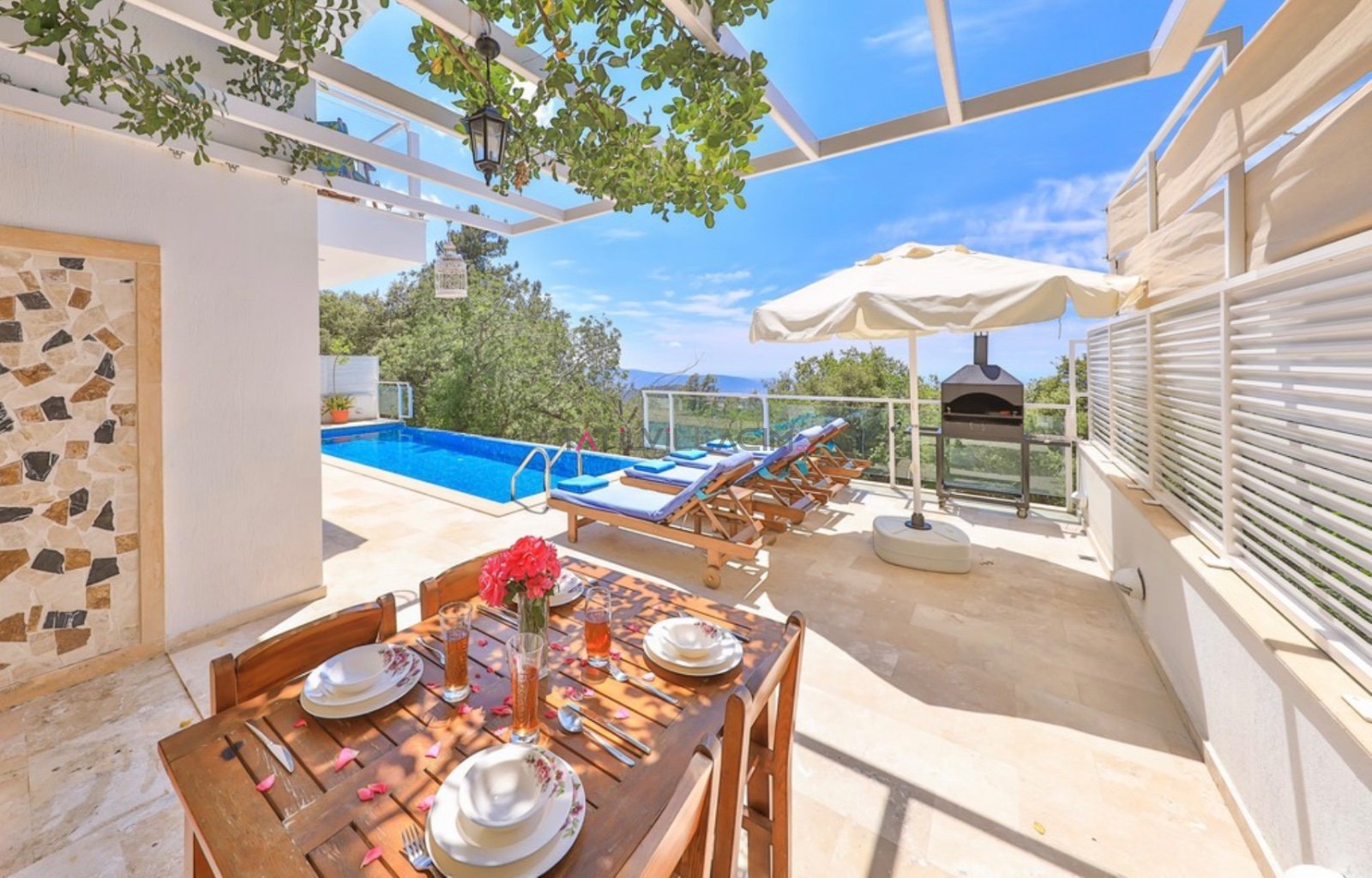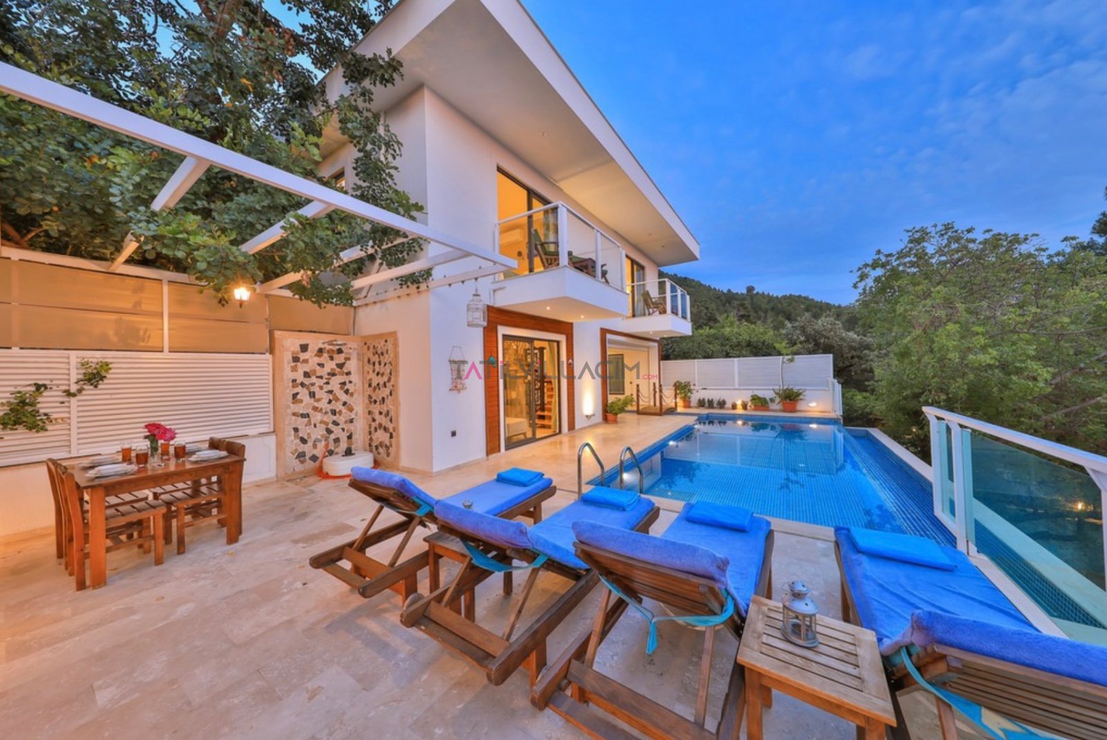 Antalya Kalkan üzümlü bölgesinde yar alan 4 kişikapasiteye sahip jakuzili tatil villamız. Yüzma havuzunda ısıması yer alan villamızı kıs aylarında da tercih edebilirsiniz.
