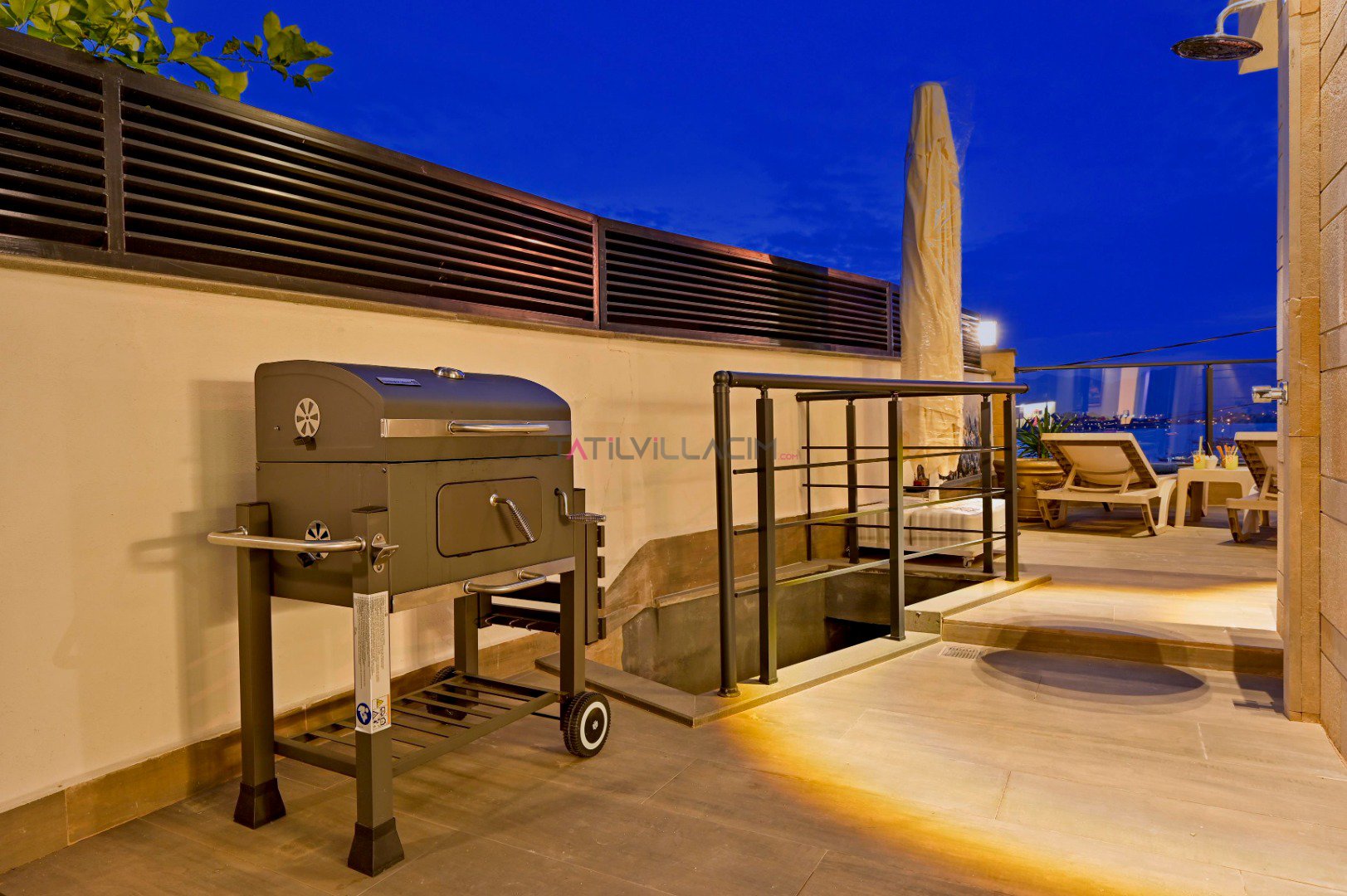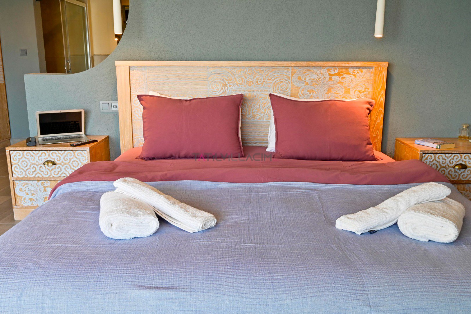 Jakuzi&Sauna: Ebeveyn odasındaki jakuzi, denize karşı romantik bir an yaratırken; sauna bölümü, şehir yaşamının stresini tamamen geride bırakmanız için tasarlanmış. Gününüzü dışarıda geçirseniz bile, gece eve dönüşünüzde sizi bekleyen bu ayrıcalıklar tatil deneyiminizi zirveye taşıyor.