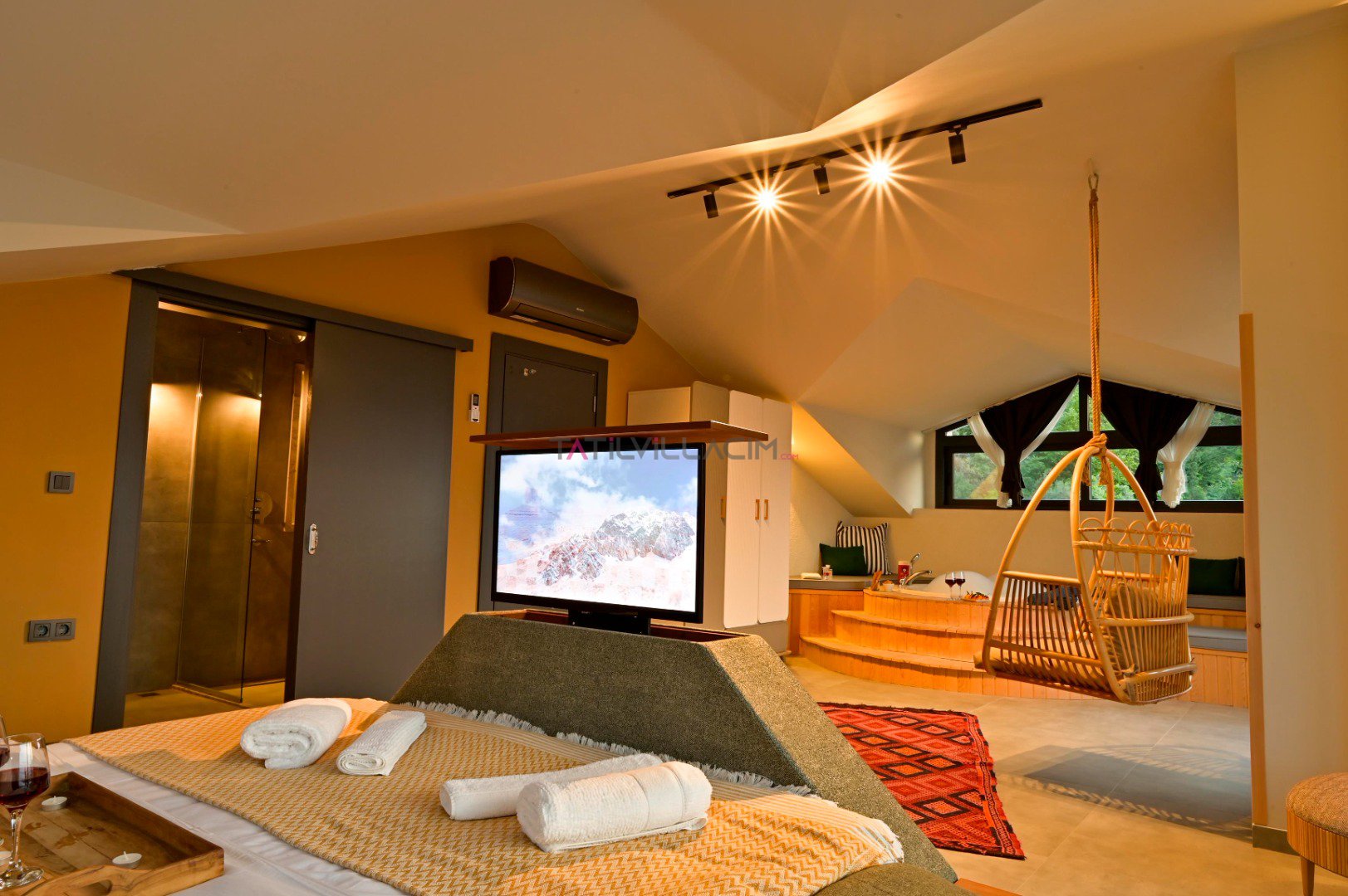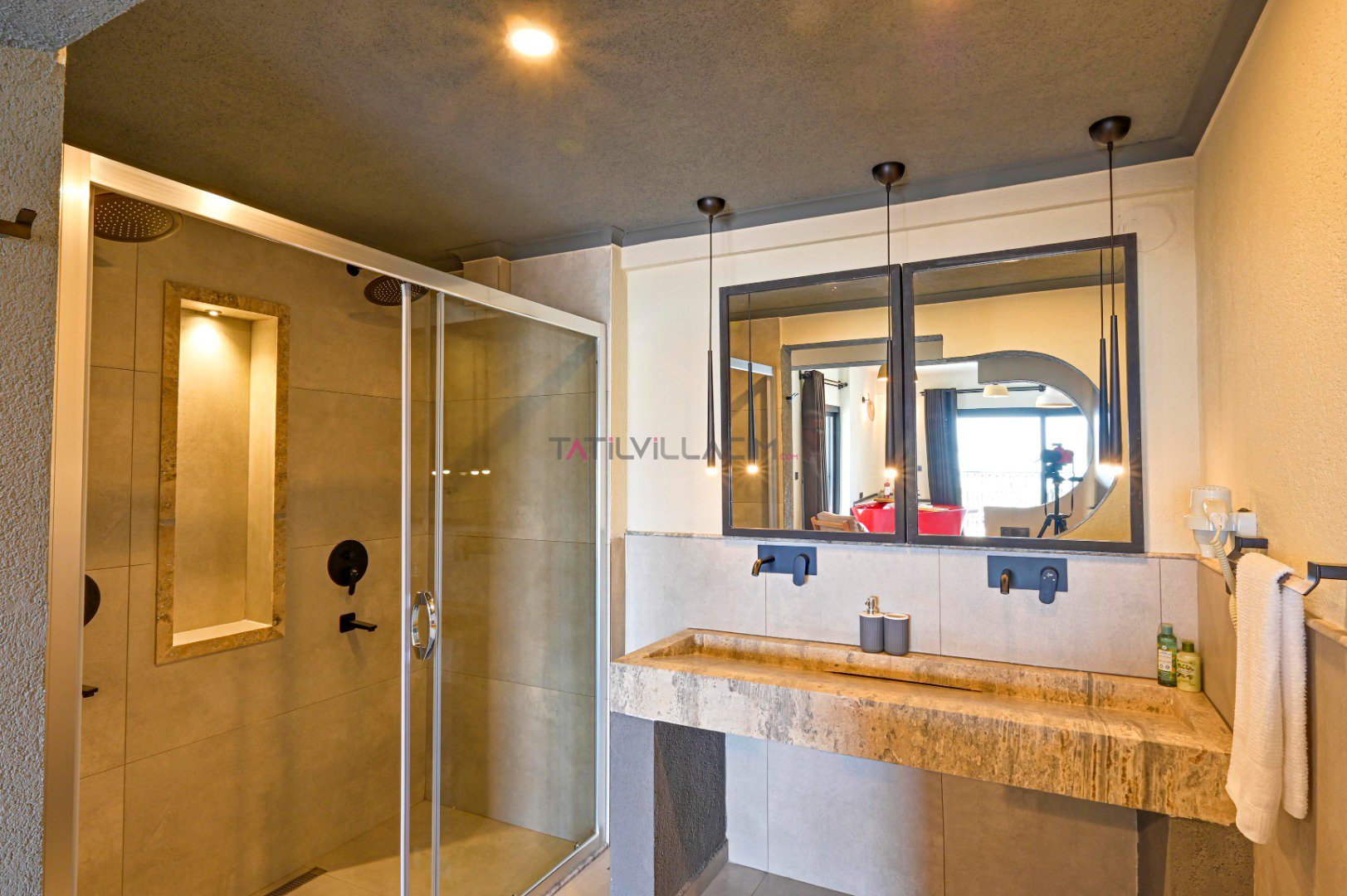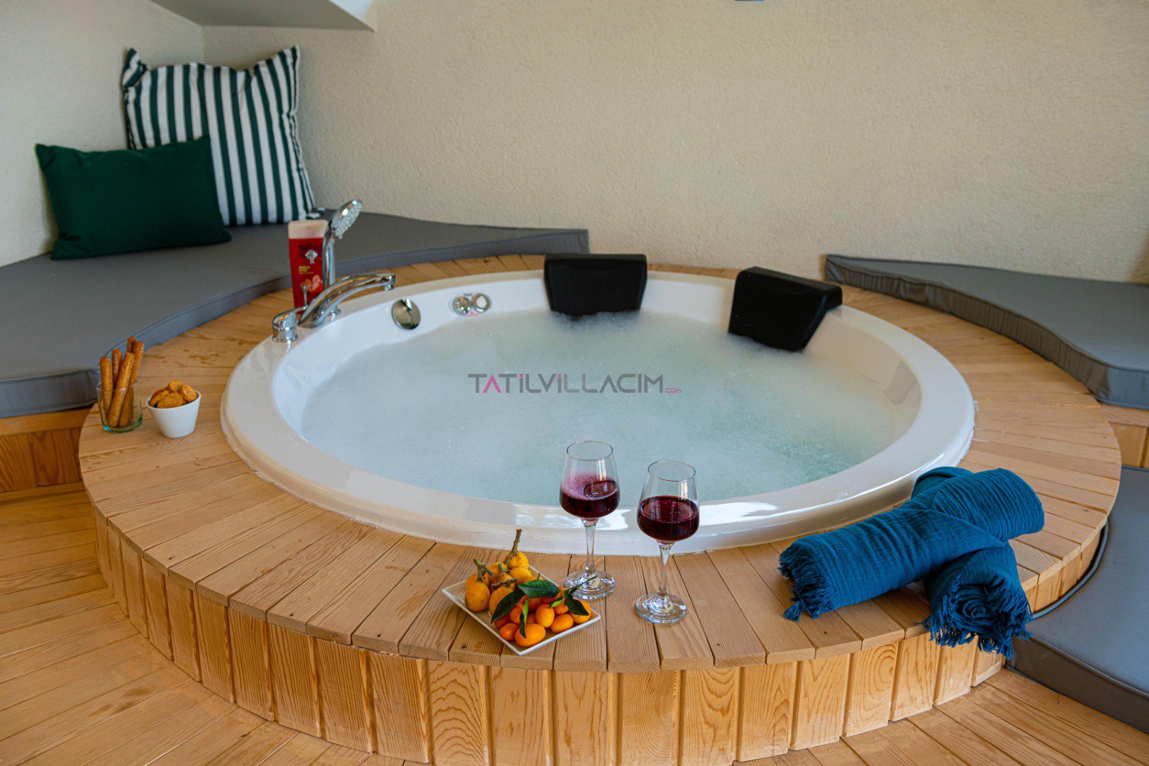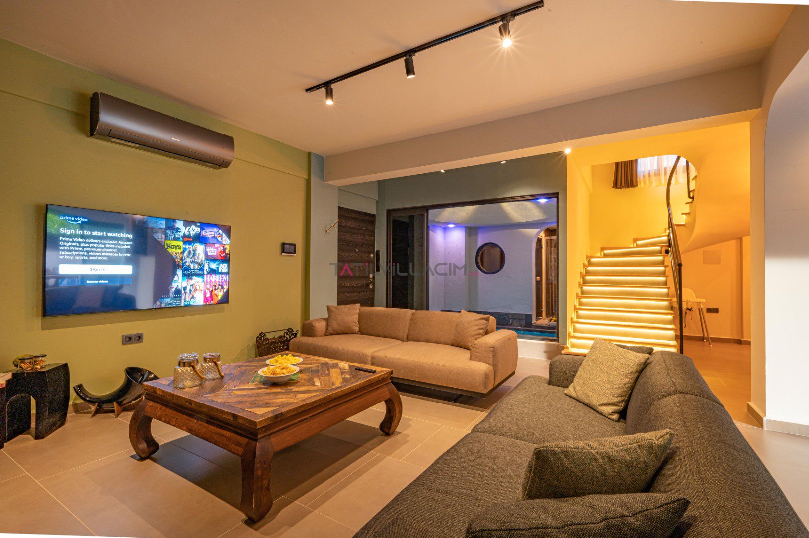 Havuz: Villada hem açık hem kapalı yüzme havuzu bulunuyor. Kapalı havuz, ısıtma sistemi sayesinde dört mevsim kullanıma uygun. Açılır-kapanır perde sistemi sayesinde havuz alanı korunaklı hale geliyor; böylece özel hayatınız daima güvende. Bu detay, özellikle muhafazakar tatil tercih eden misafirler için büyük bir avantaj sağlıyor.