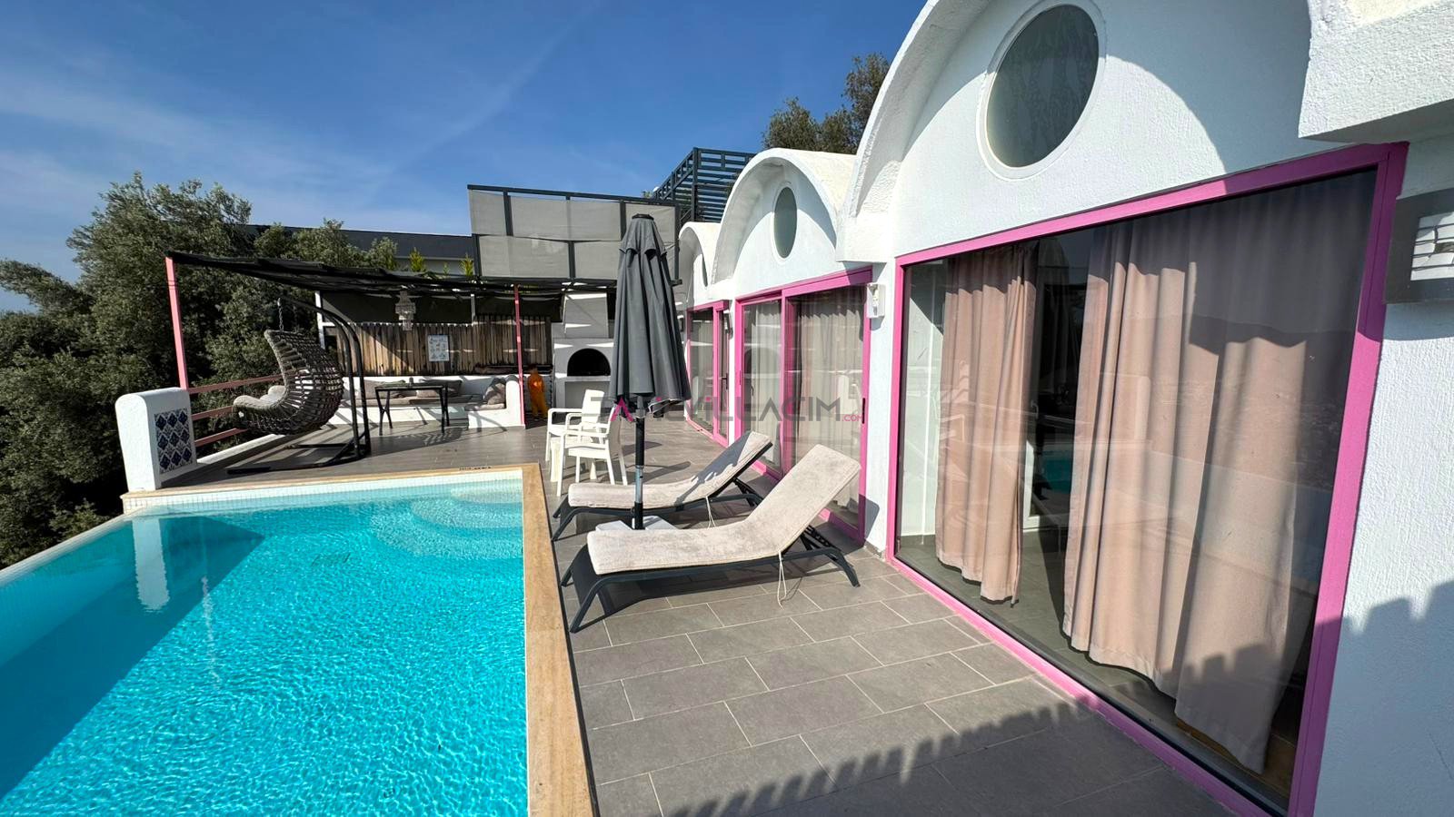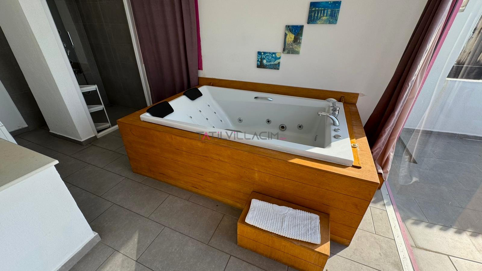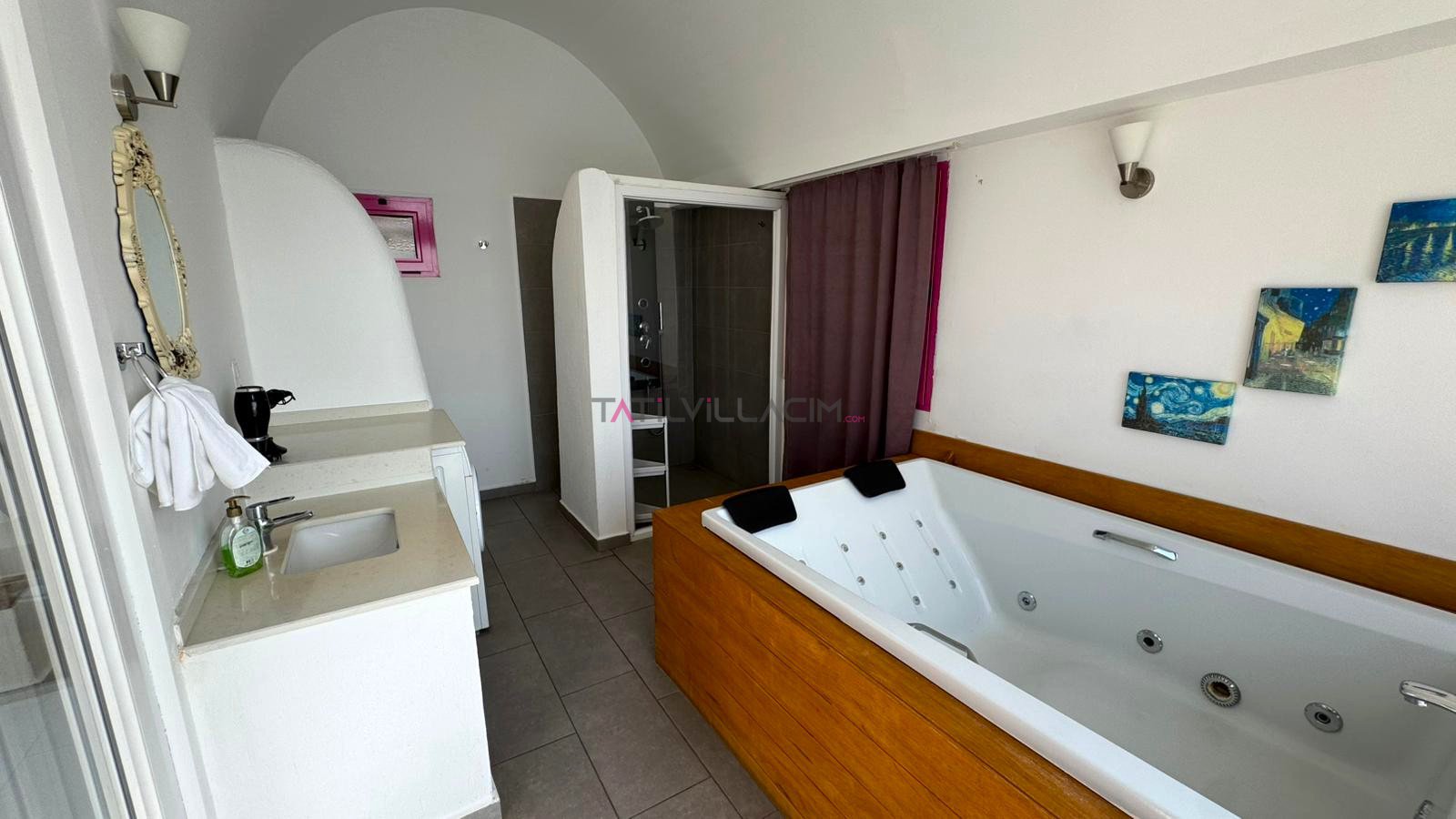 Sonsuzluk havuzu, deniz manzarasıyla bütünleşerek eşsiz bir atmosfer oluştururken; jakuzisi romantik ve rahatlatıcı anlar yaşamanıza olanak tanır. Şık, modern ve özenle dekore edilmiş iç mekanları sayesinde hem dinlenebileceğiniz hem de keyifli vakit geçirebileceğiniz bir yaşam alanı sunar.