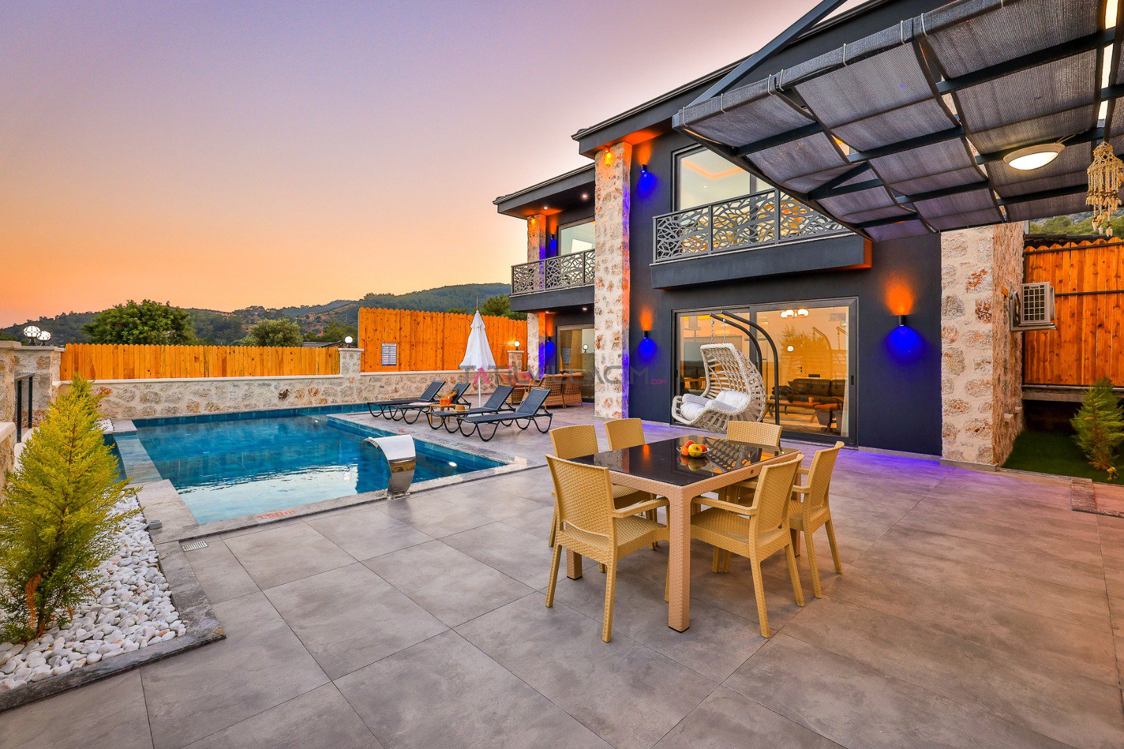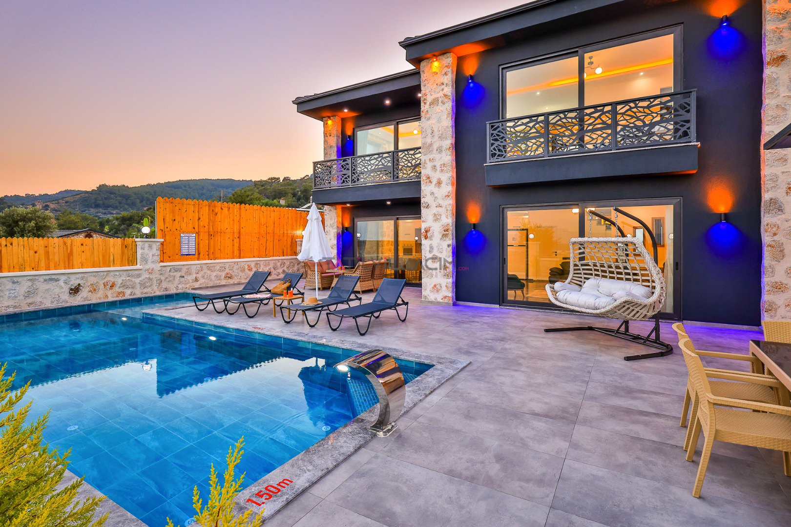 Geniş bahçesi, barbekü alanı, çocuklar için salıncak ve güvenli oyun alanı, ayrıca çocuk havuzu bölümü sayesinde ailece keyifli vakit geçirmeniz mümkündür. Yeni ve modern yapısıyla dört mevsim konaklamaya uygun olan villa, kaliteli malzemelerle döşenmiş odalarıyla ev konforunu aratmayan bir atmosfer sunar.