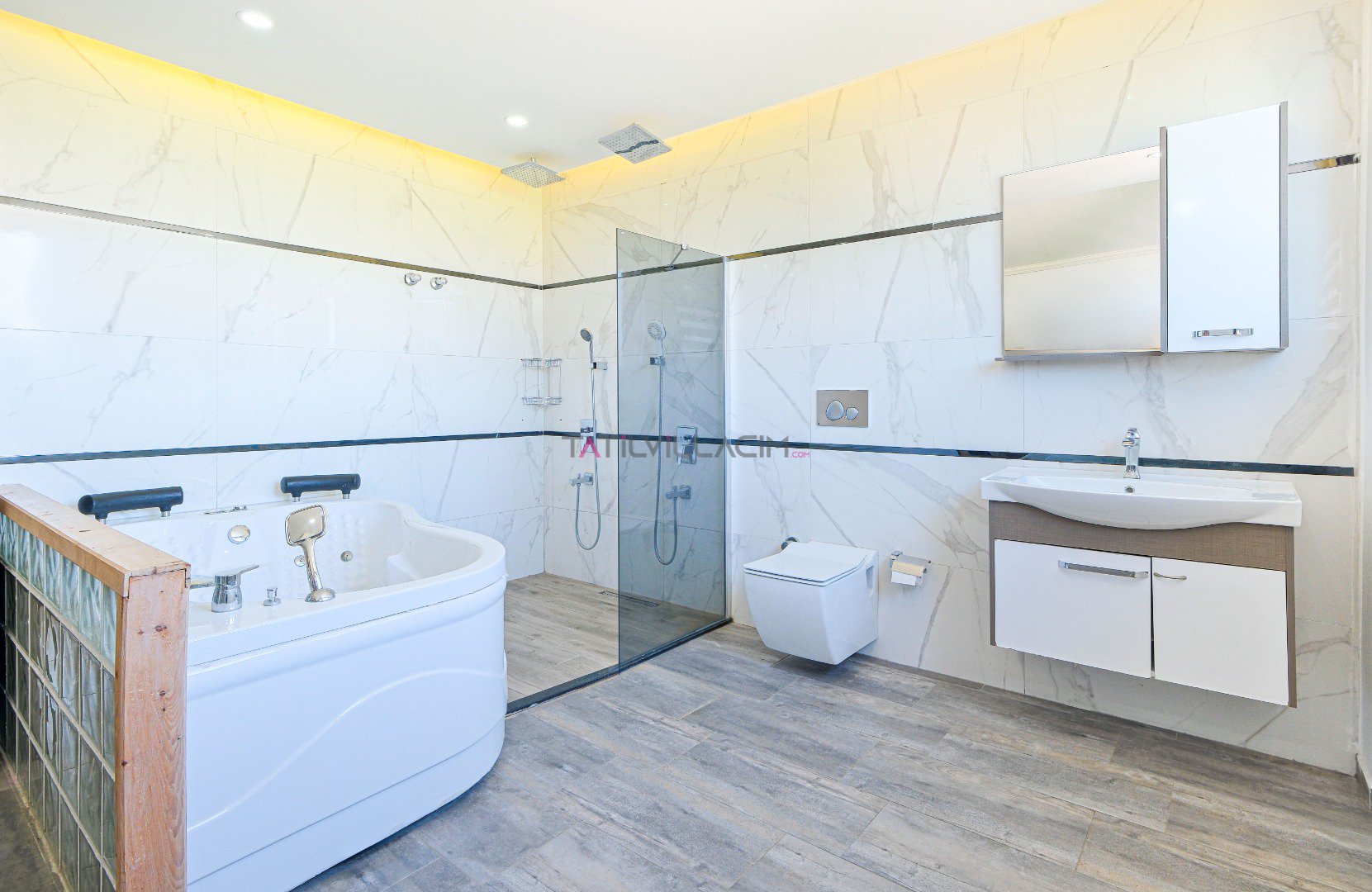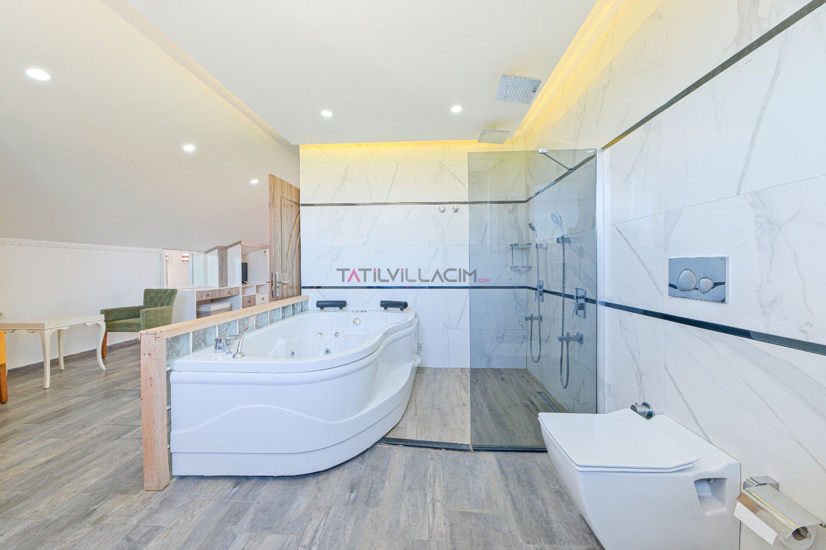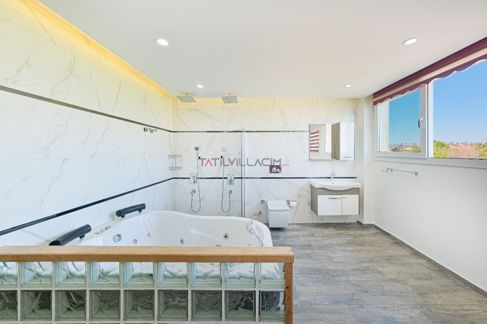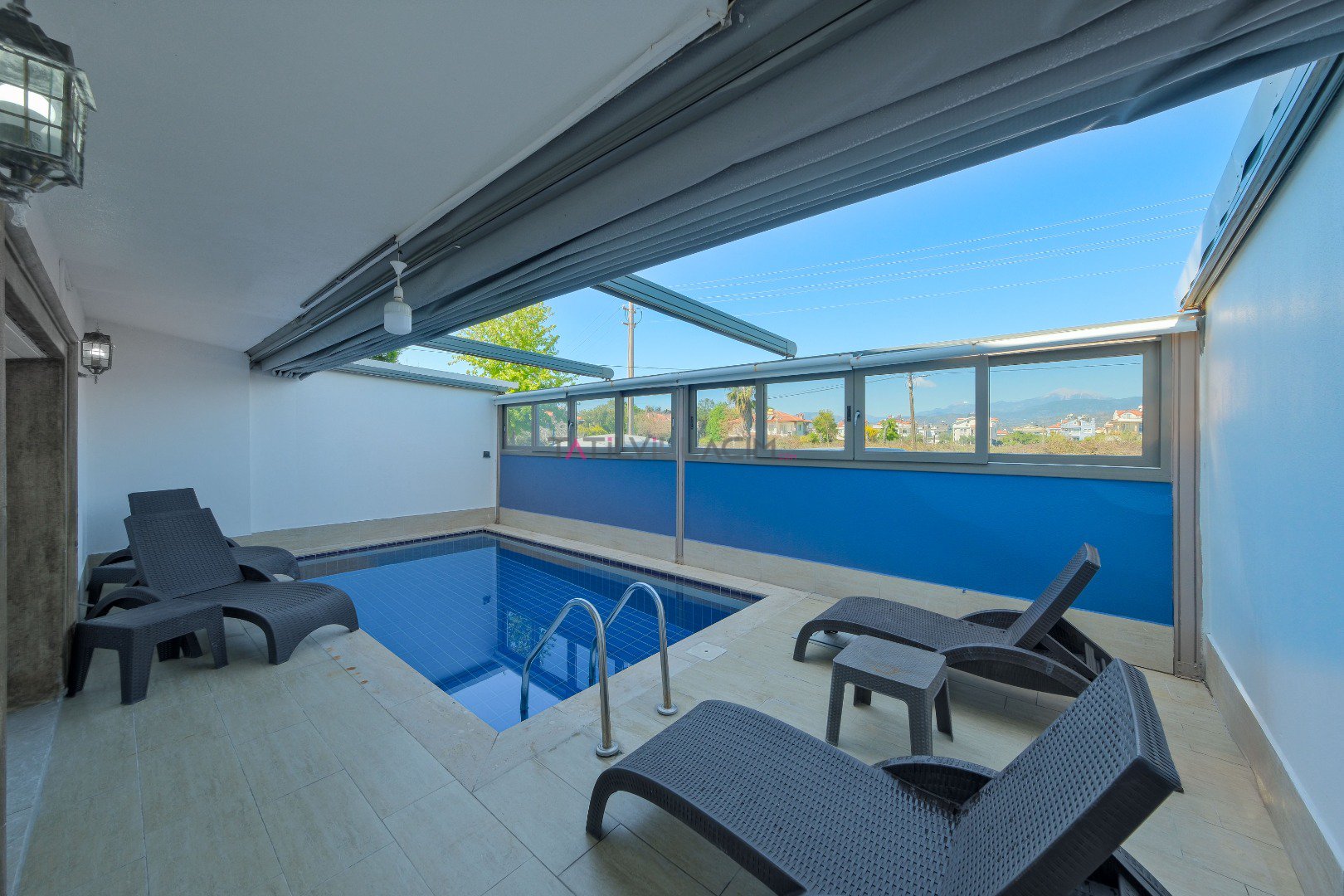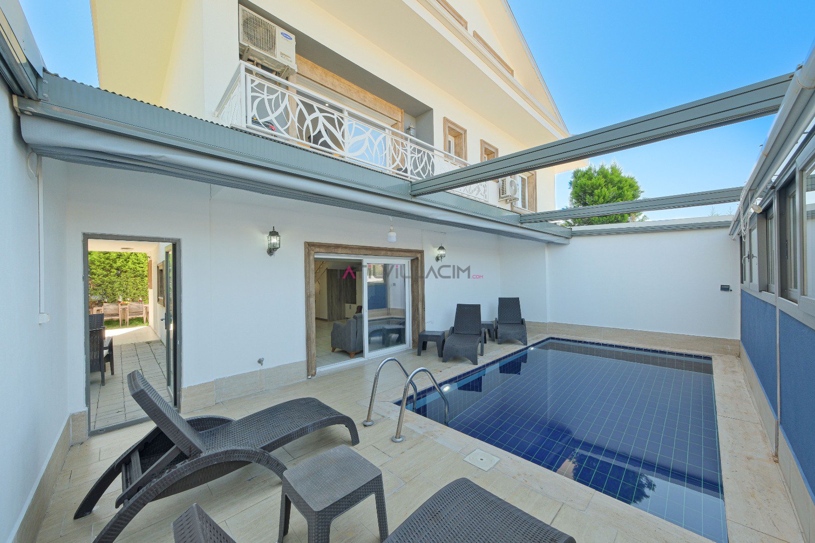 Villada, açılır-kapanır havuz terası, şezlong takımı, oturma grubu, salıncak ve barbekü alanı gibi rahatlatıcı özellikler bulunmaktadır. Özel havuzda güneşin tadını çıkarabilir, saunada rahatlayabilirsiniz. Oturma odası ve açık mutfak alanı, sevdiklerinizle birlikte vakit geçirebileceğiniz konforlu bir ortam sunar. Birinci yatak odasında çift kişilik yatak, jakuzi ve ebeveyn banyosu yer alırken, ikinci yatak odasında da çift kişilik yatak ve banyo mevcuttur. Üçüncü yatak odasında ise iki tek kişilik yatak ve banyo bulunmaktadır.