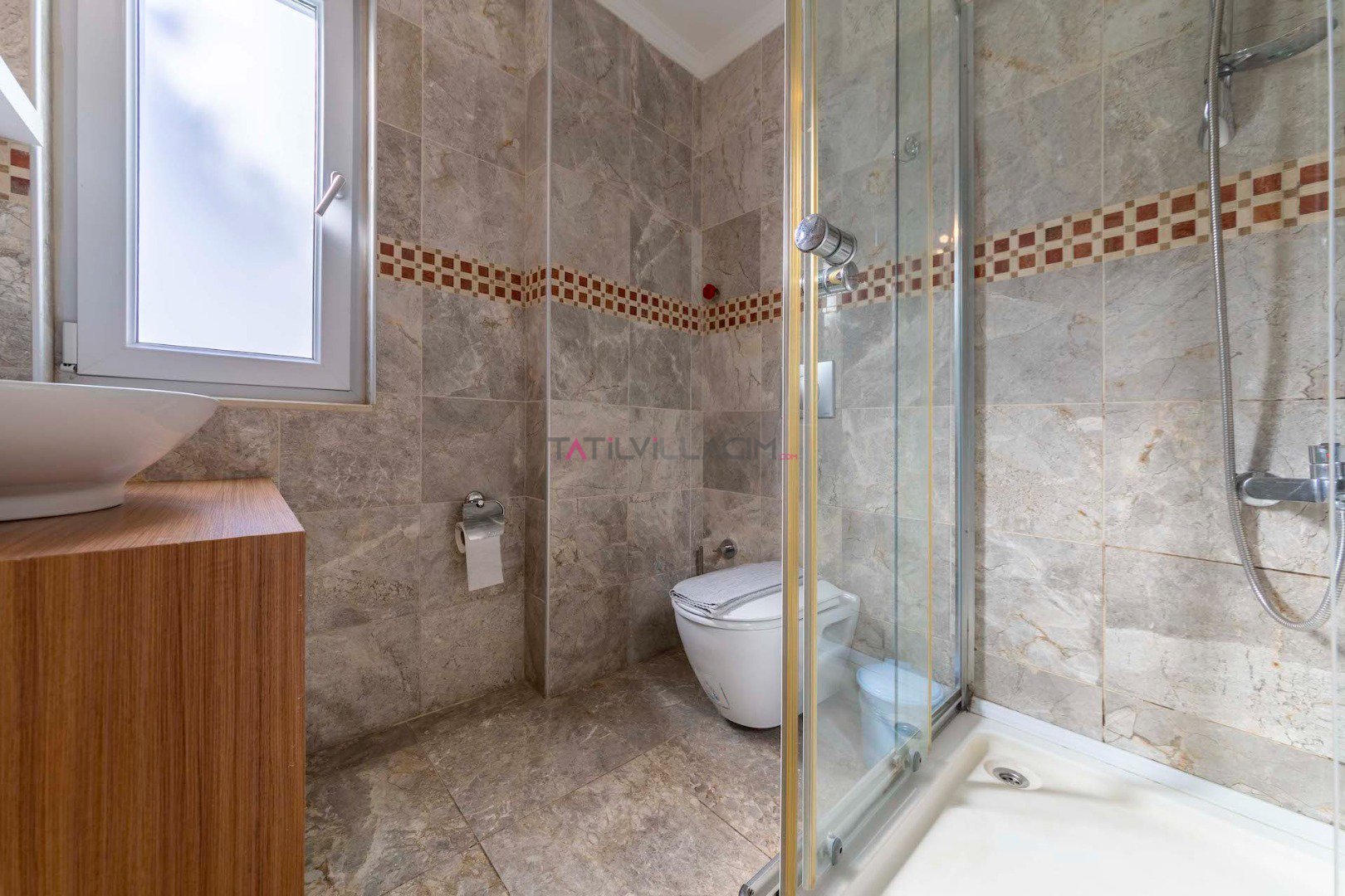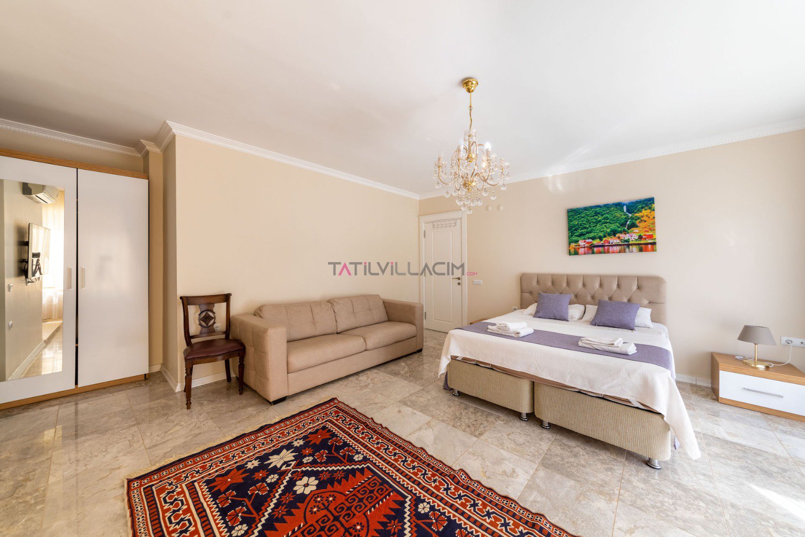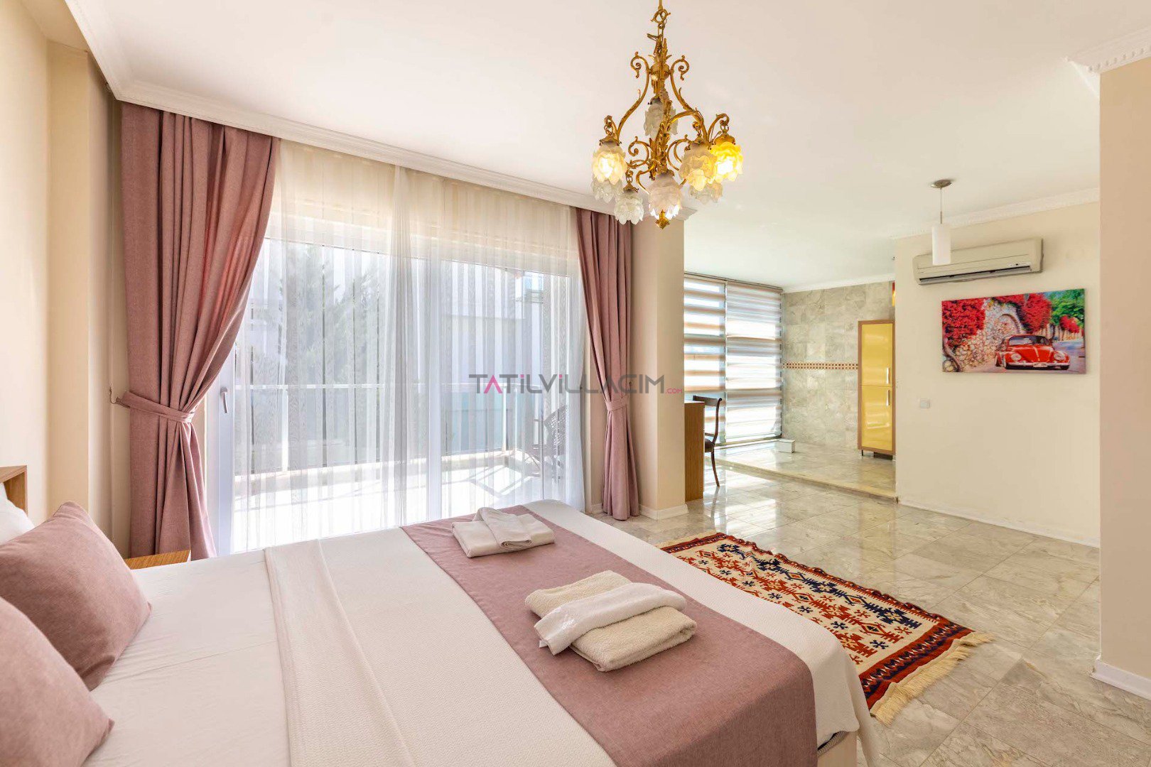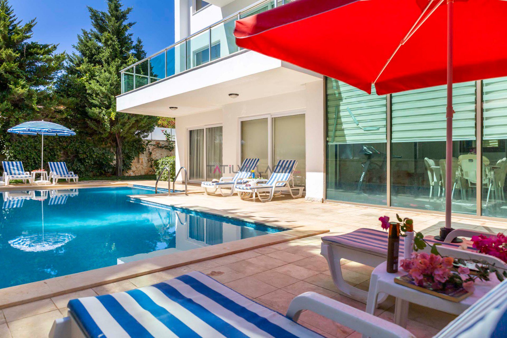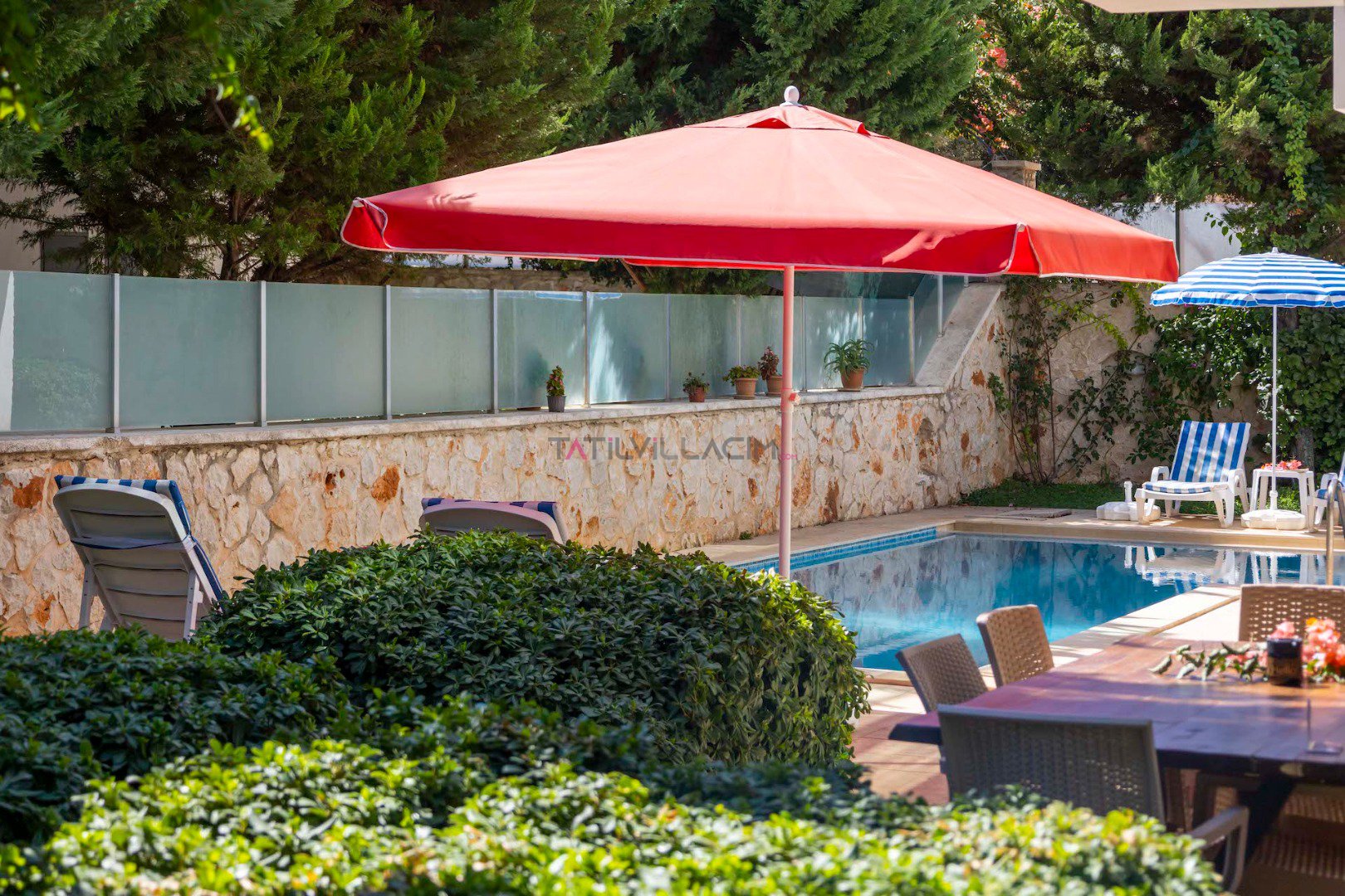 Kalkan Kalamar mevkisinde; kalabalık aileler ve arkadaş grupları için son derece şık bir bir alternatif. Kalkan'ın nezih mekanlarına çok kısa yürüme mesafesindeki yazvillamız aynı zamanda Kalamar plajına da yürüme mesafesindedir. Sadeliğin asaletinden ve huzur veren dokusundan vazgeçemeyen misafirlerimiz için iç mekanları beyaz renkte boyanarak; sade ama şık mobilyalarla dekore edişmiştir. Sakin yürüyüşlere çıkabileceğiniz ve ihtiyaç duyabileceğiniz market, restoran gibi lokasyonlara da yürüyüş mesafesinde olan Villa Sedef 1 gerek kapasitesi gereksekonumu sebeli ile sık tercih edilen seçeneklerimizden. İhtiyaç duyabileceğiniz tüm eşyaları bünyesinde barındıran villamız için yeni misafirlerimizi bekliyoruz.
