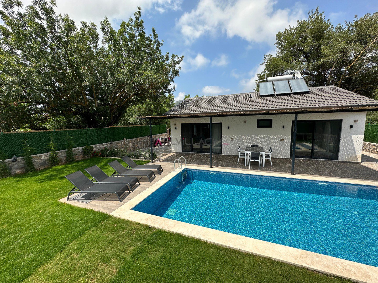 Villa Sefa Bahçesi, doğanın ve tarihin buluştuğu Fethiye’nin gözde destinasyonlarından Kayaköy’de yer almaktadır. Eşsiz konumu, huzurlu atmosferi ve tam korunaklı özel havuzu ile Villa Aysu, özellikle muhafazakar aileler ve balayı çiftleri için ideal bir tatil seçeneğidir. Fethiye kiralık villa arayışınızda, hem konforu hem de gizliliği bir arada sunan bu özel villa, sizleri bekliyor.