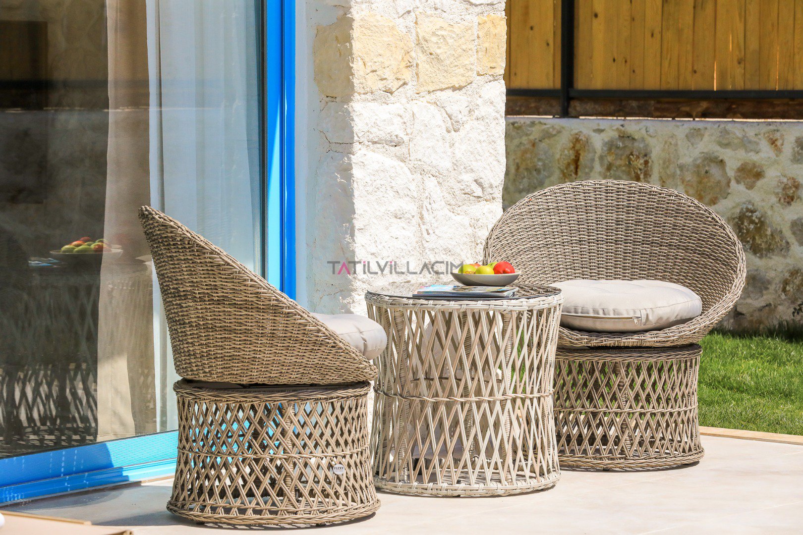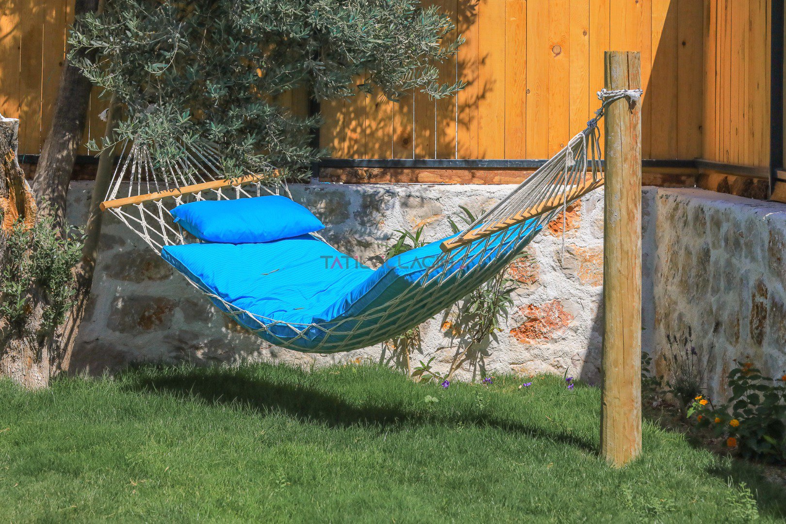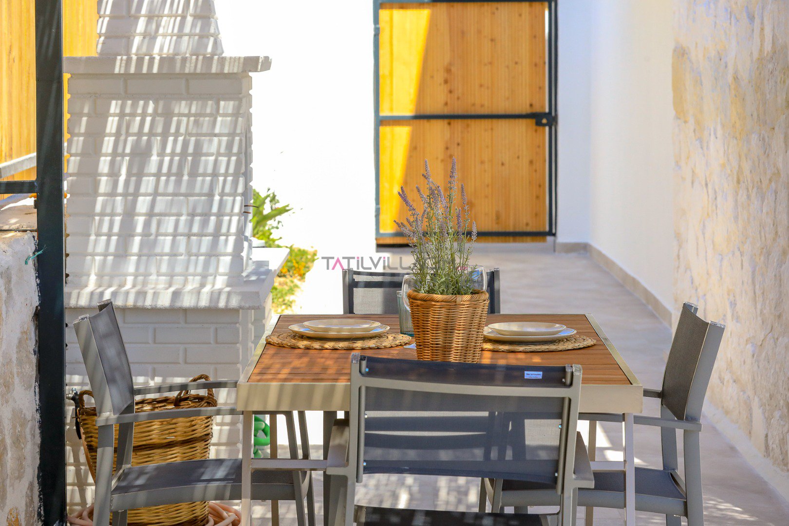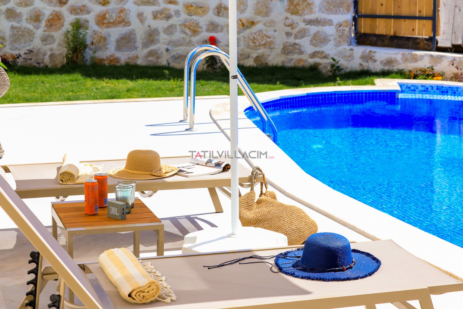 Villanın özel bahçesinde; size ait yüzme havuzu, şezlonglar, güneş şemsiyeleri, salıncak, açık hava yemek masası ve barbekü alanı yer almaktadır. Gün batımında havuz başında romantik anlar yaşayabilir, yıldızlar altında keyifli akşam yemekleriyle tatilinizi taçlandırabilirsiniz.