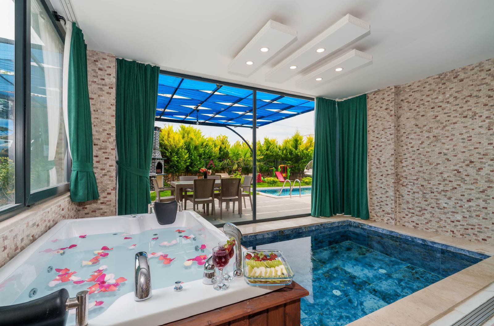 Modern ve konforlu tasarıma sahip villamız 4 kişilik konaklama kapasitesi sunmaktadır. Özellikle muhafazakar aileler ve balayı çiftleri için oldukça uygun bir tatil imkanı sağlamaktadır. Size özel alanınızda gözlerden uzak, rahat ve huzurlu bir tatil deneyimi yaşayabilirsiniz.