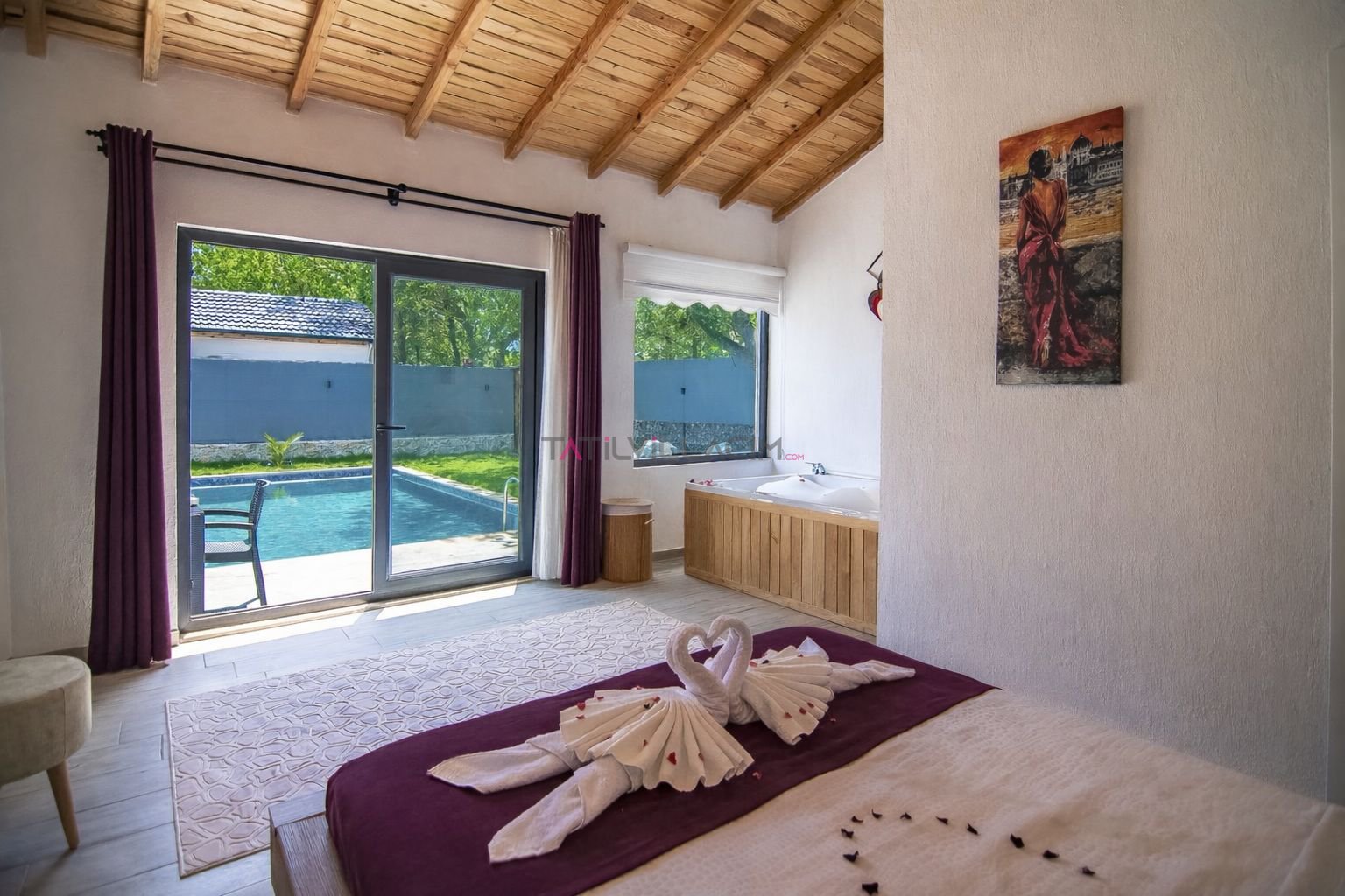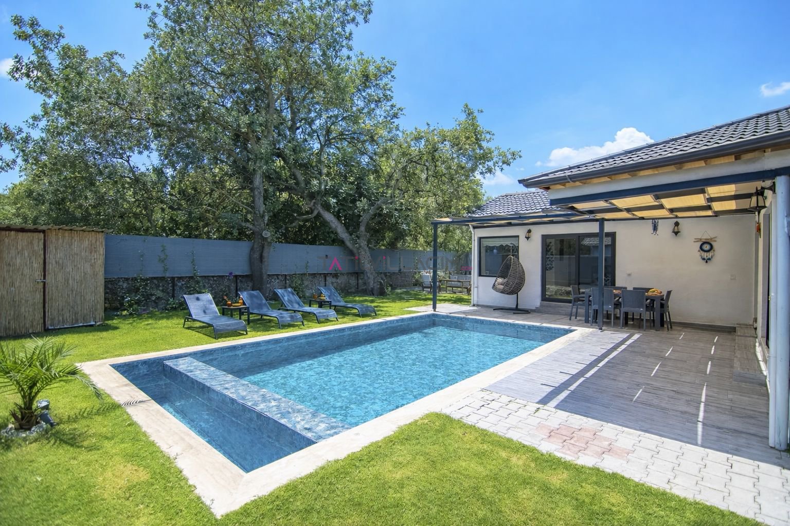 Korunaklı özel havuz alanı ile gözlerden uzak tatil imkânı