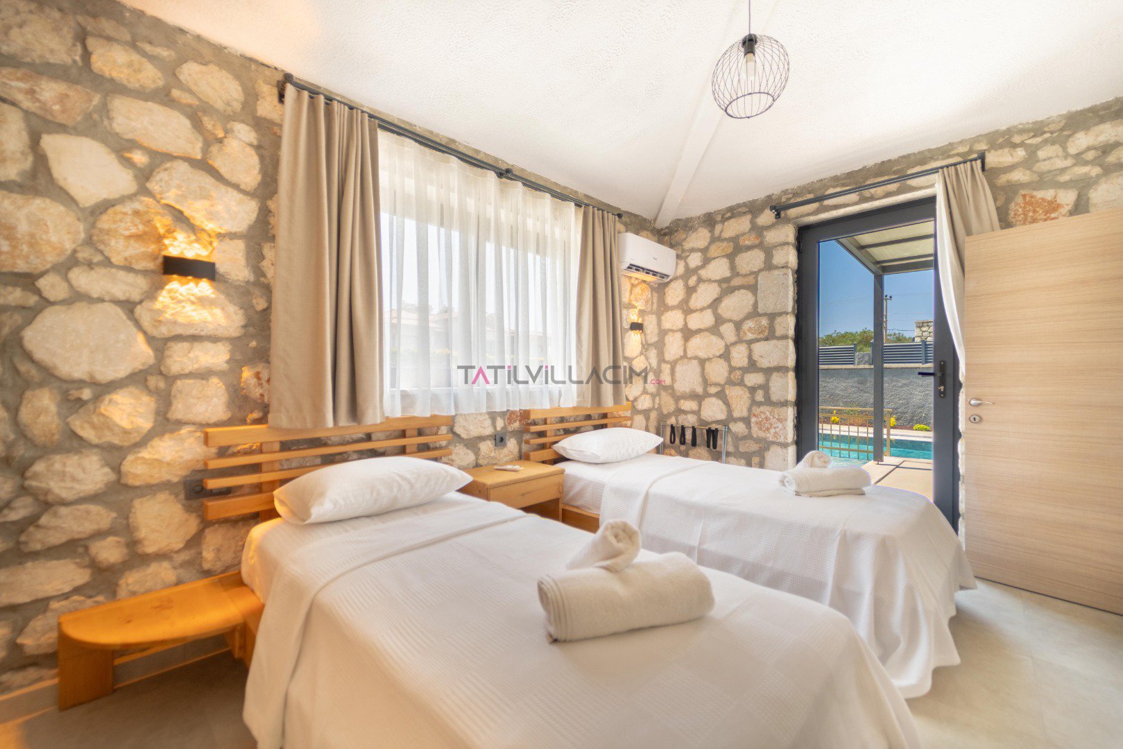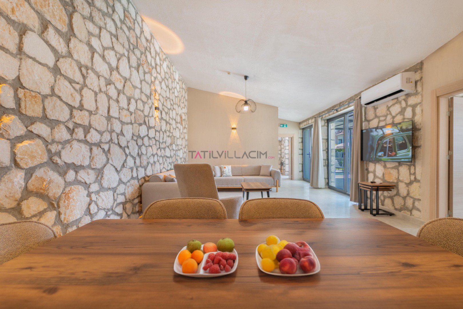 Kapasite: İç mekânda ise konfor ve şıklık bir arada. Modern bir oturma odası ve tam donanımlı açık mutfak sayesinde tatiliniz boyunca evinizdeki konforu aramayacaksınız. Toplamda 4 kişilik konaklama kapasitesi sunan villa, balayı çiftleri ve çekirdek aileler için ideal bir tercih. Doğanın içerisinde, mahremiyet sunan yapısı sayesinde özellikle sakinlik arayan misafirlerin beklentilerini fazlasıyla karşılıyor.