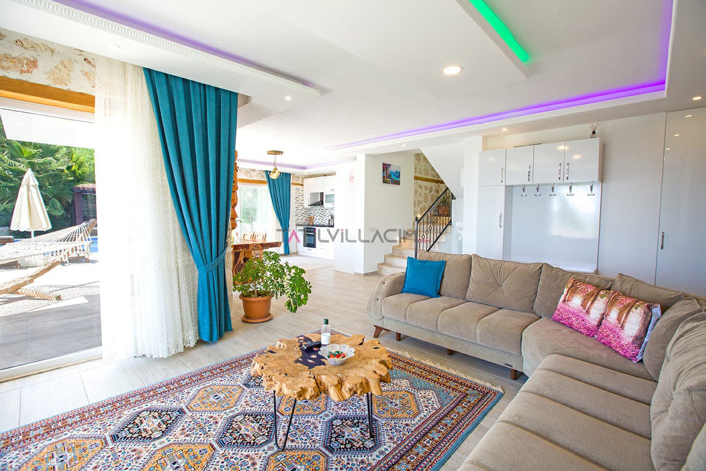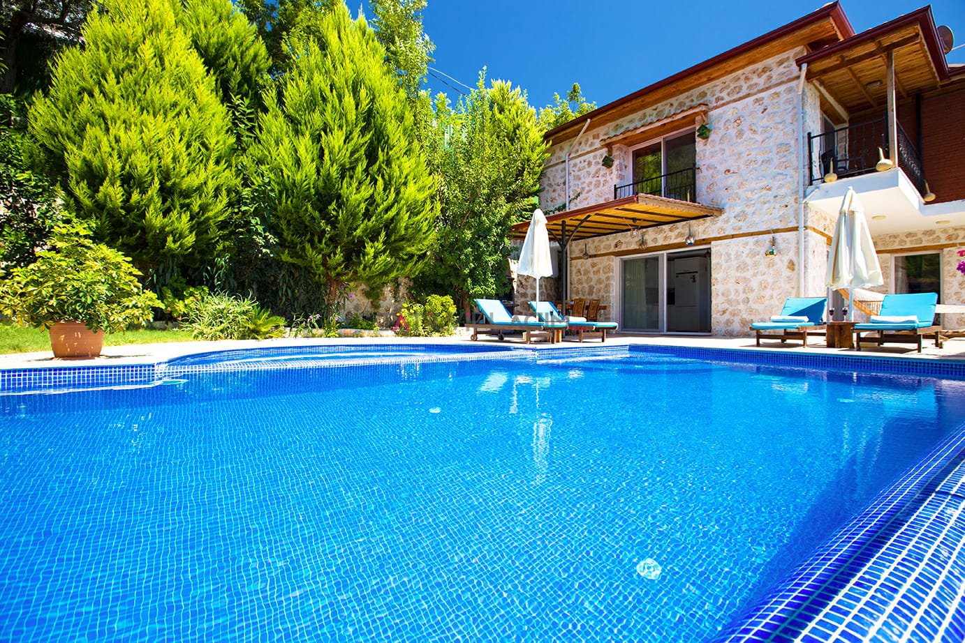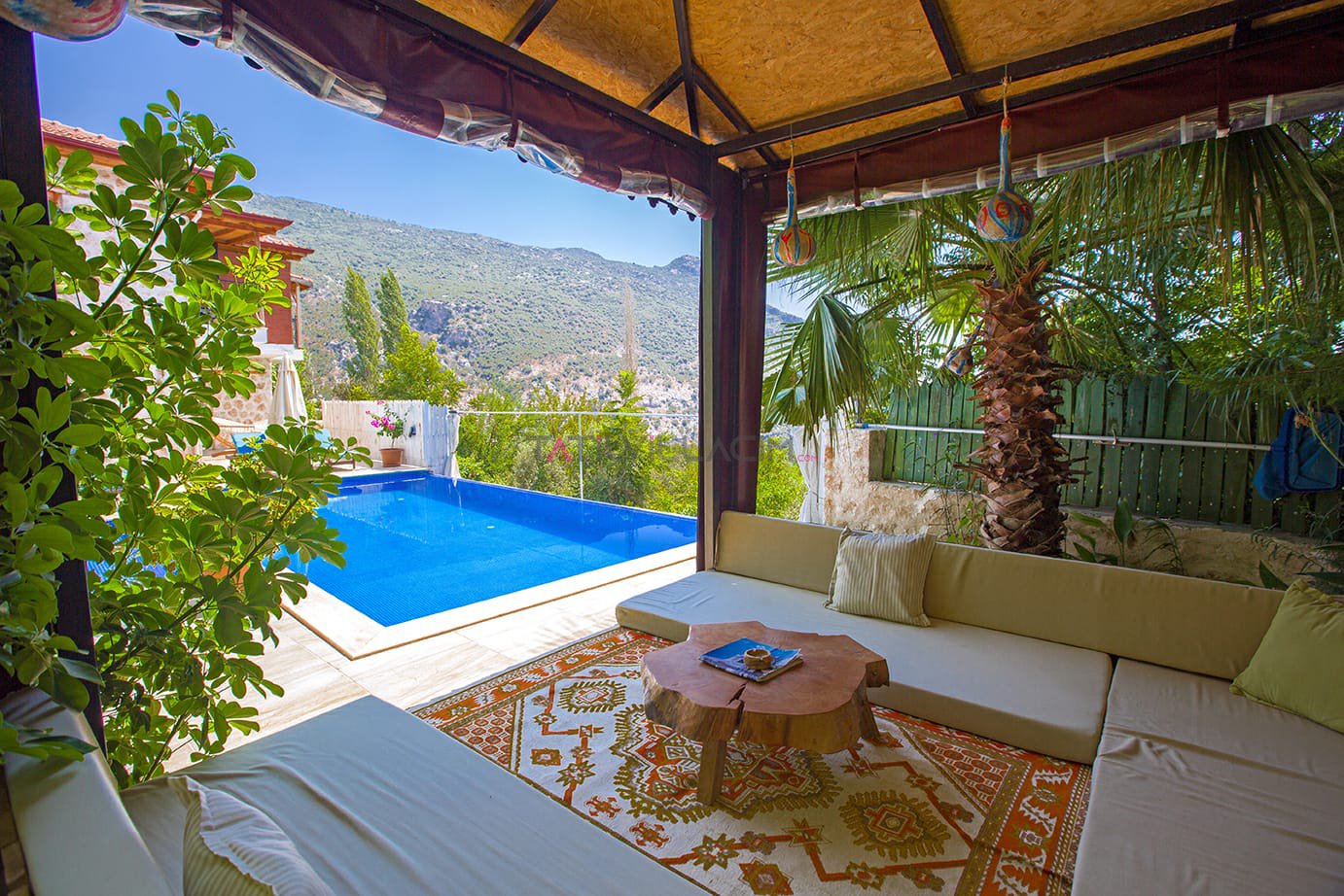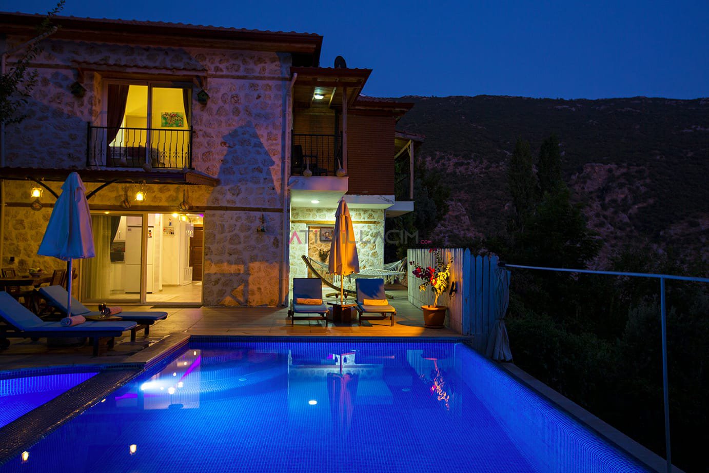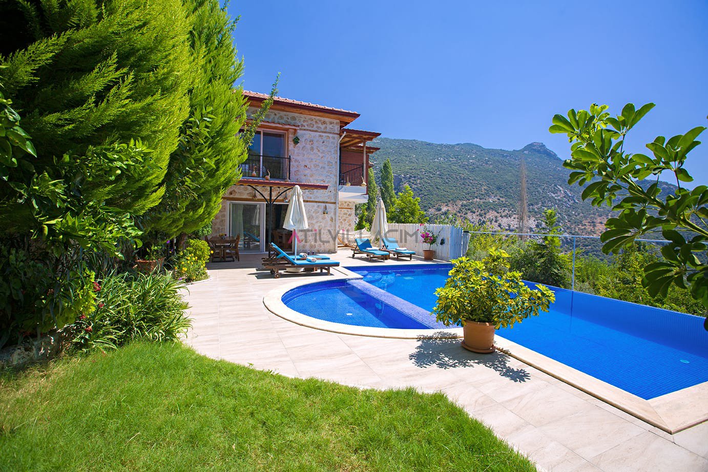 Kalkan İslamlar bölgesinde bulunan Villa Talya 4 kişi konaklama kapasitesine sahip tatil villasıdır.Taş mimarisi ve mistik havasıyla tatiliniz boyunca hem ruhunuzu hemde bedeninizi dinlendirebiceğiniz ideal bir secenek olacaktır.Havuz alanı korunaklı olup çocuk havuzu da bulunan villamızın dışarıdan hiç bir şekilde görülme olasılığı yoktur.