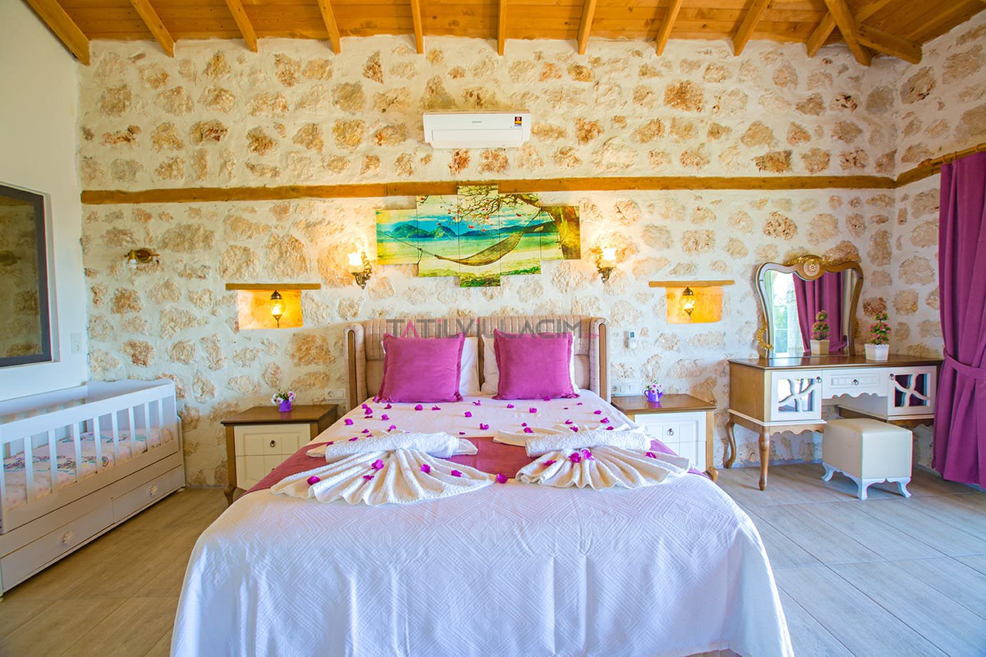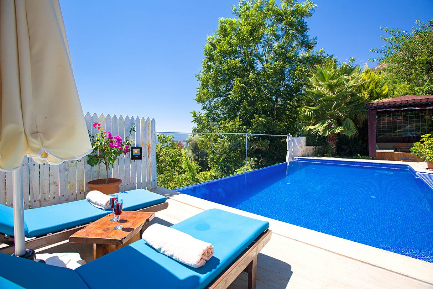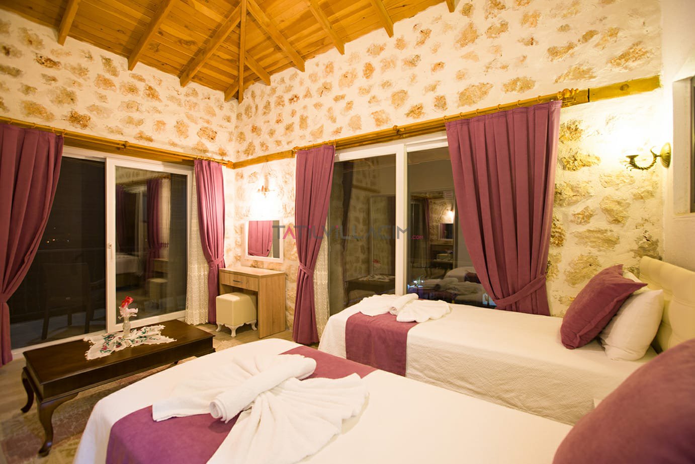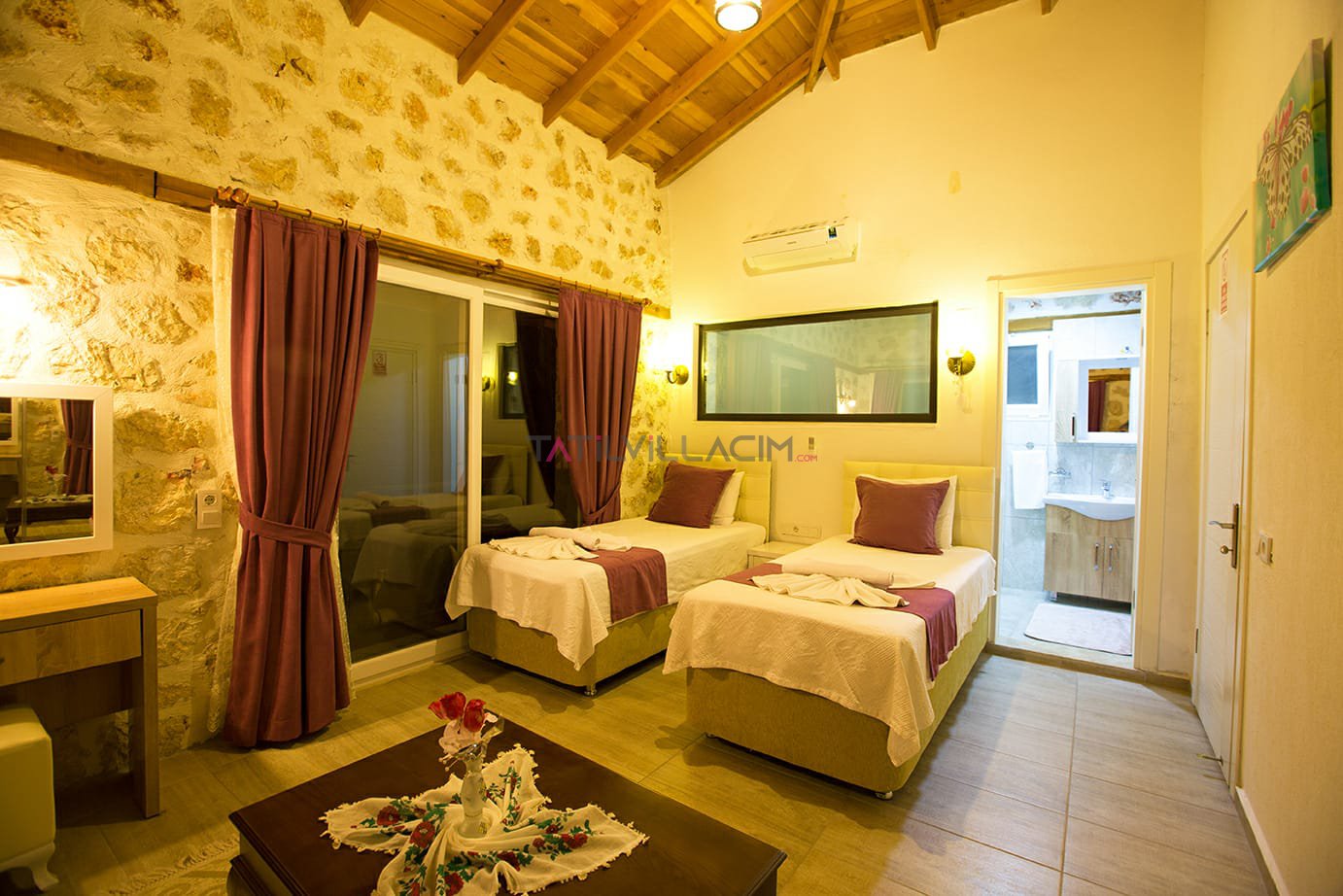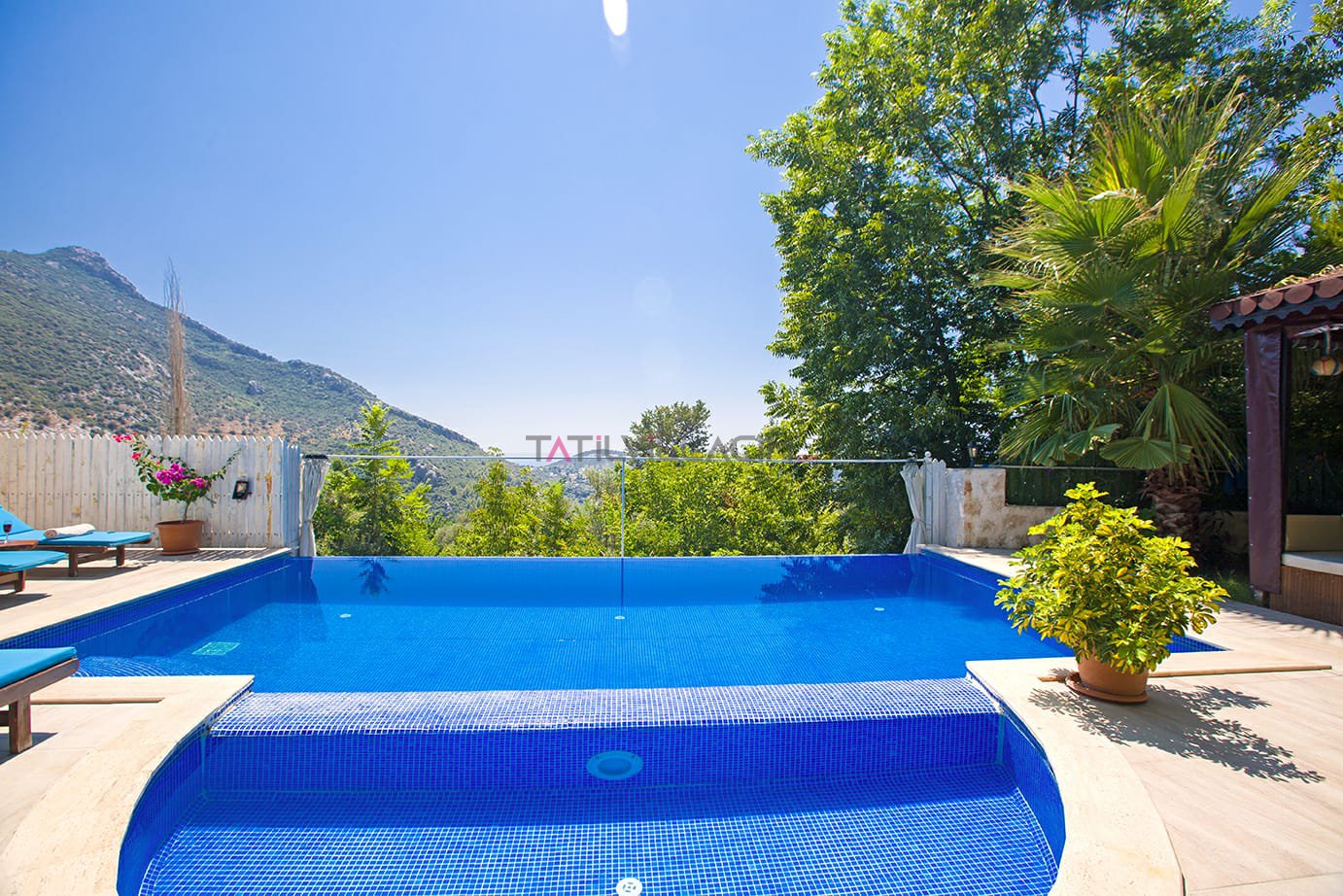 Kalkan İslamlar bölgesinde bulunan Villa Talya 4 kişi konaklama kapasitesine sahip tatil villasıdır.Taş mimarisi ve mistik havasıyla tatiliniz boyunca hem ruhunuzu hemde bedeninizi dinlendirebiceğiniz ideal bir secenek olacaktır.Havuz alanı korunaklı olup çocuk havuzu da bulunan villamızın dışarıdan hiç bir şekilde görülme olasılığı yoktur.