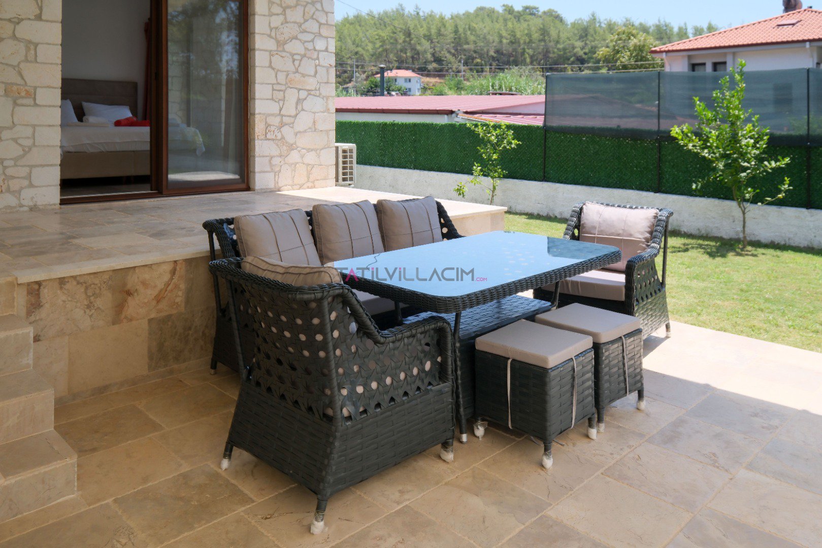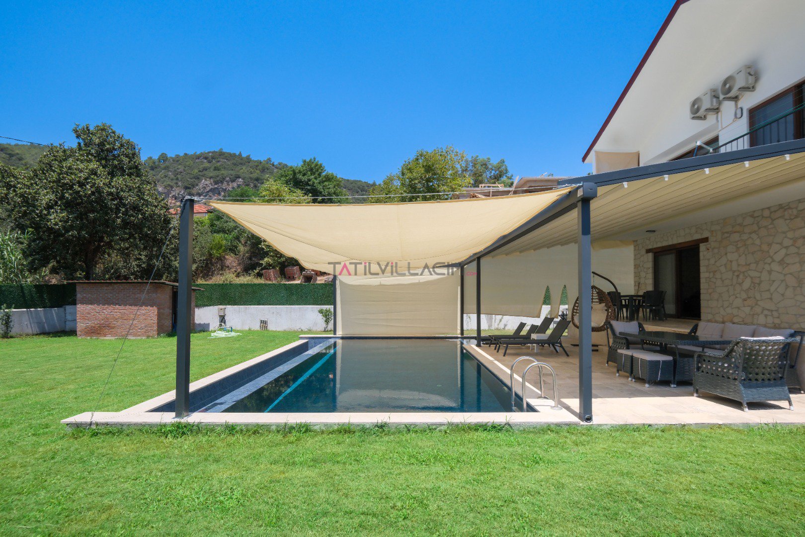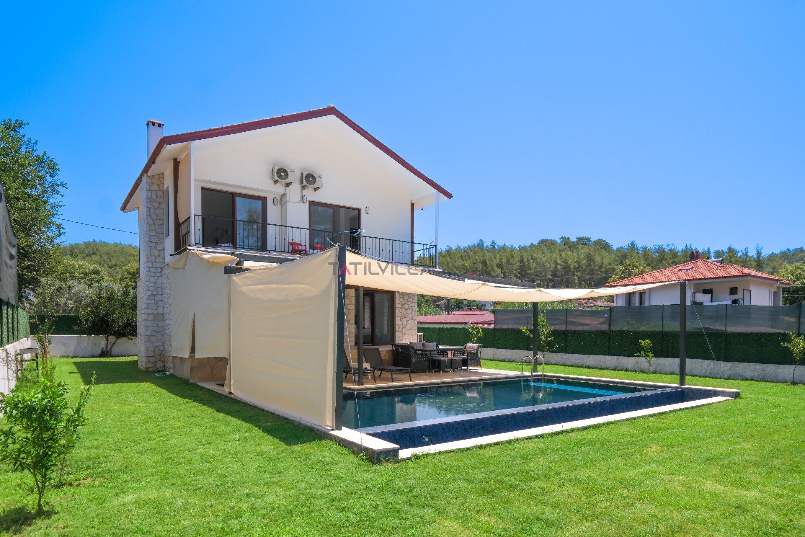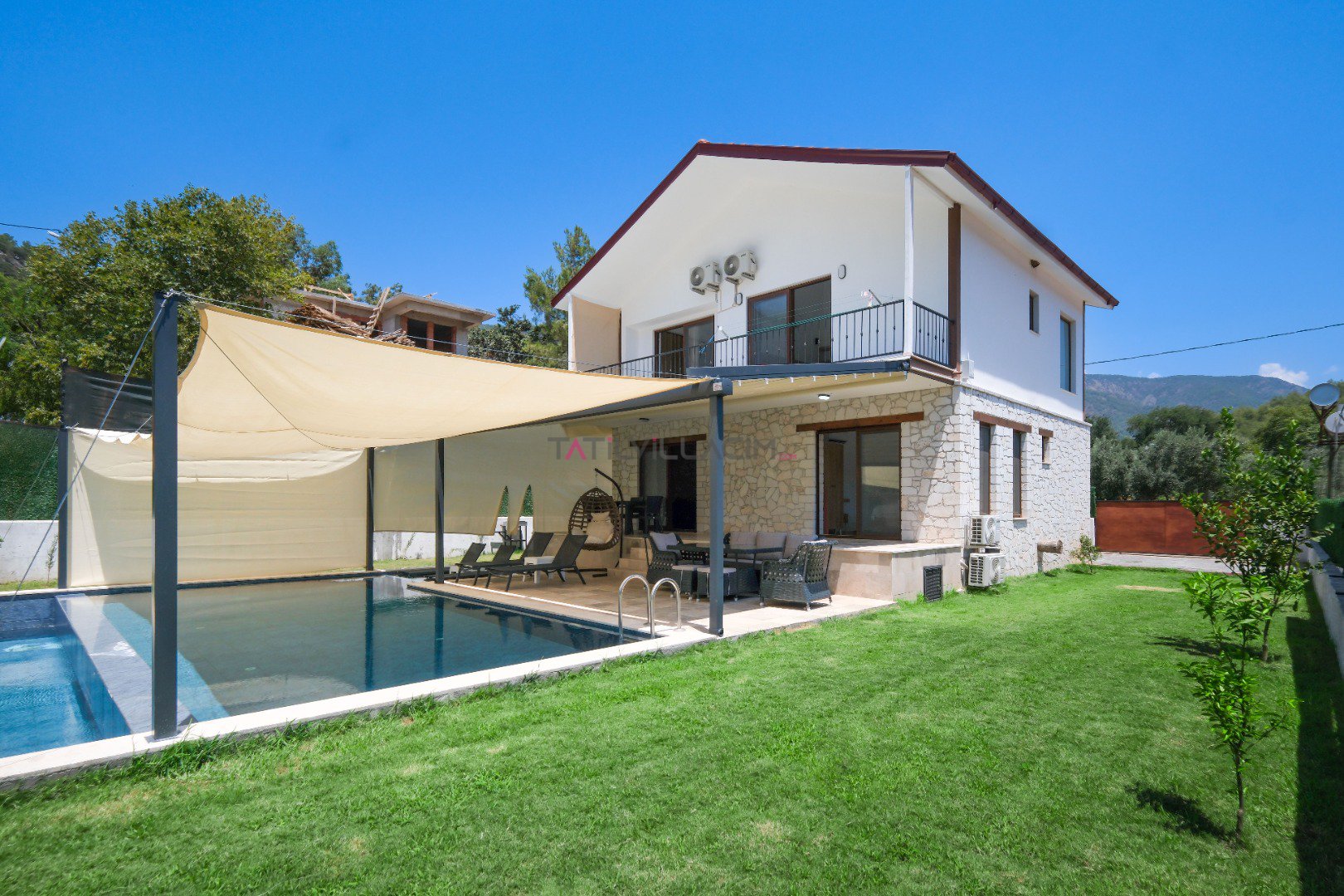 Fethiye Ölüdeniz'de yer alan Villa Taşada, modern tasarımı ve sunduğu olağanüstü olanaklarla 8 kişiye kadar konaklama imkânı sunuyor. Kendine ait geniş havuzu, özel bahçesi ve ferah iç mekanları ile hem konforlu hem de lüks bir tatil deneyimi vaat ediyor.