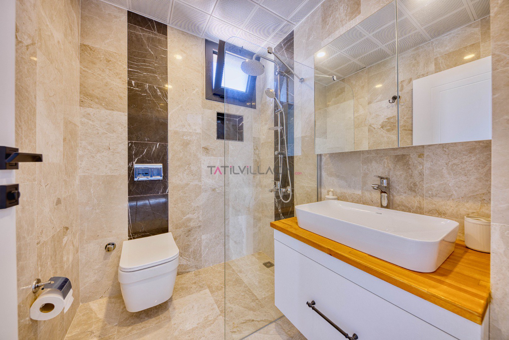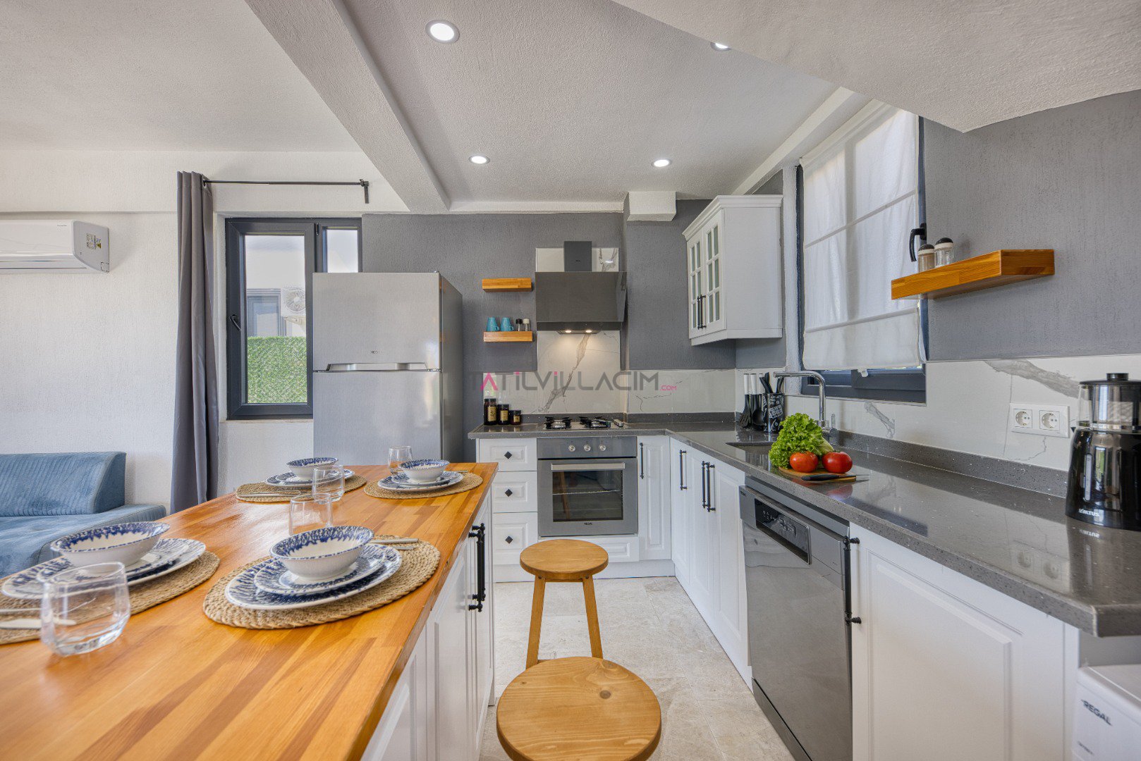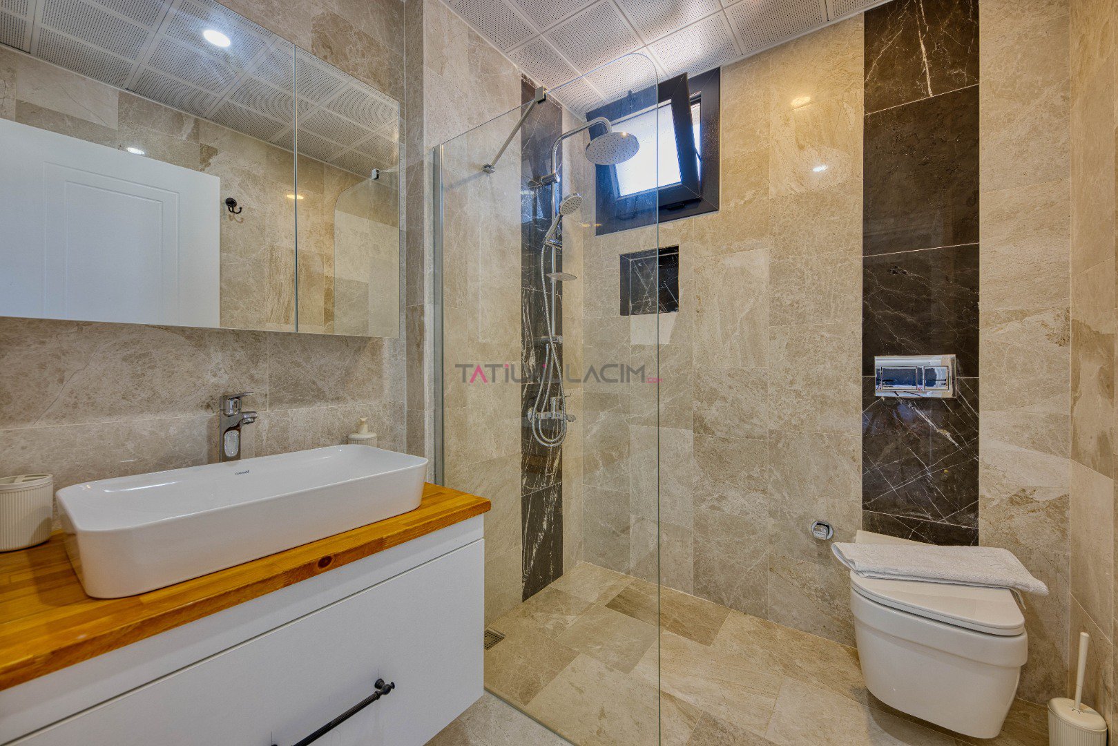 Villamızın 3. yatak odasında çift kişilik yatak, klima ve wc-banyo mevcuttur.