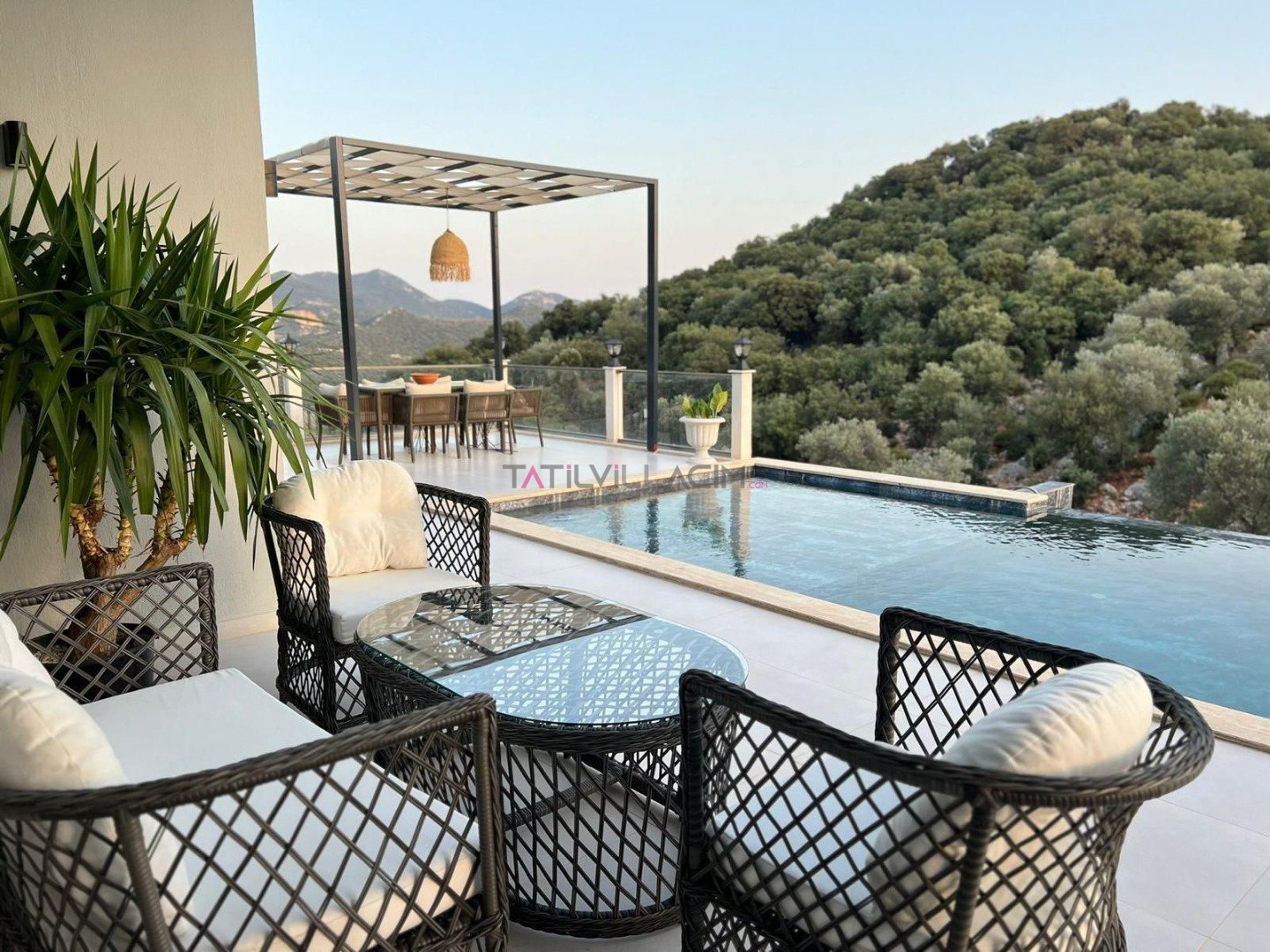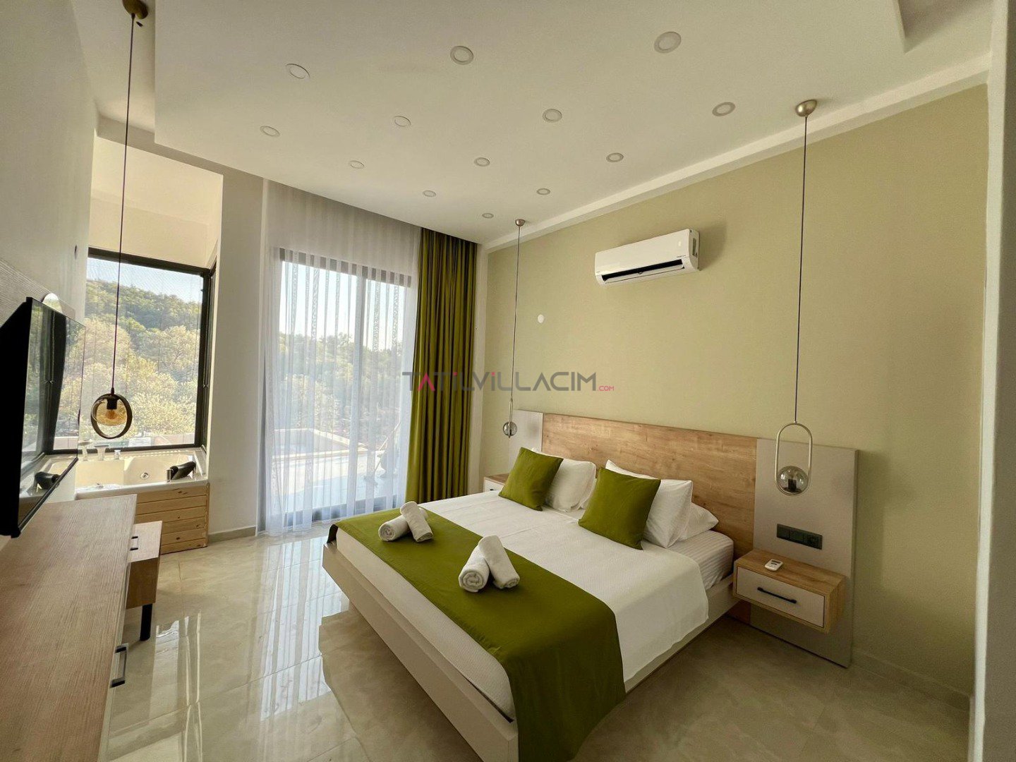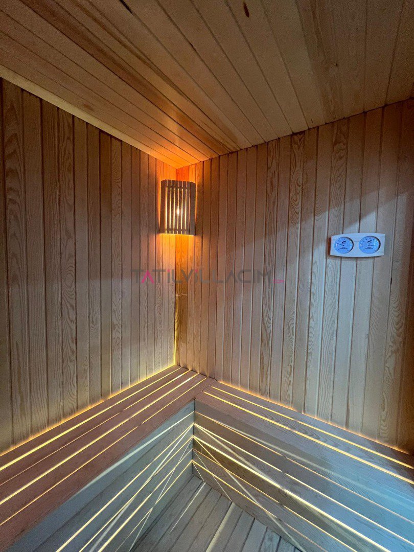 Villa Özellikleri 1 Çift Kişilik Yatak Otopark / Park Yeri Özel Bahçeli Özel Havuz Şezlong TV Sauna Hamam Sinema Odası Barbekü Spor Salonu Doğa Manzaralı Çift Jakuzili