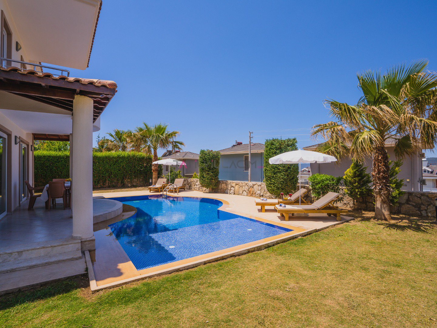 Denize yakın konumuyla dikkat çeken villamız, şık tasarımlı 3 yatak odası, geniş ve aydınlık salonu ile tam donanımlı ferah bir mutfağa sahiptir. Özel yüzme havuzu, bakımlı geniş bahçesi ve modern yaşam alanlarıyla hem konforlu hem de keyifli bir konaklama deneyimi sunar.