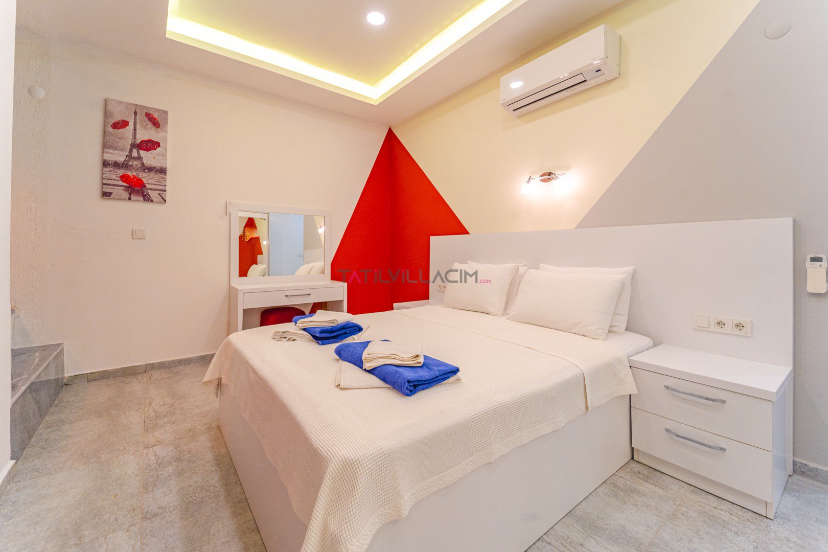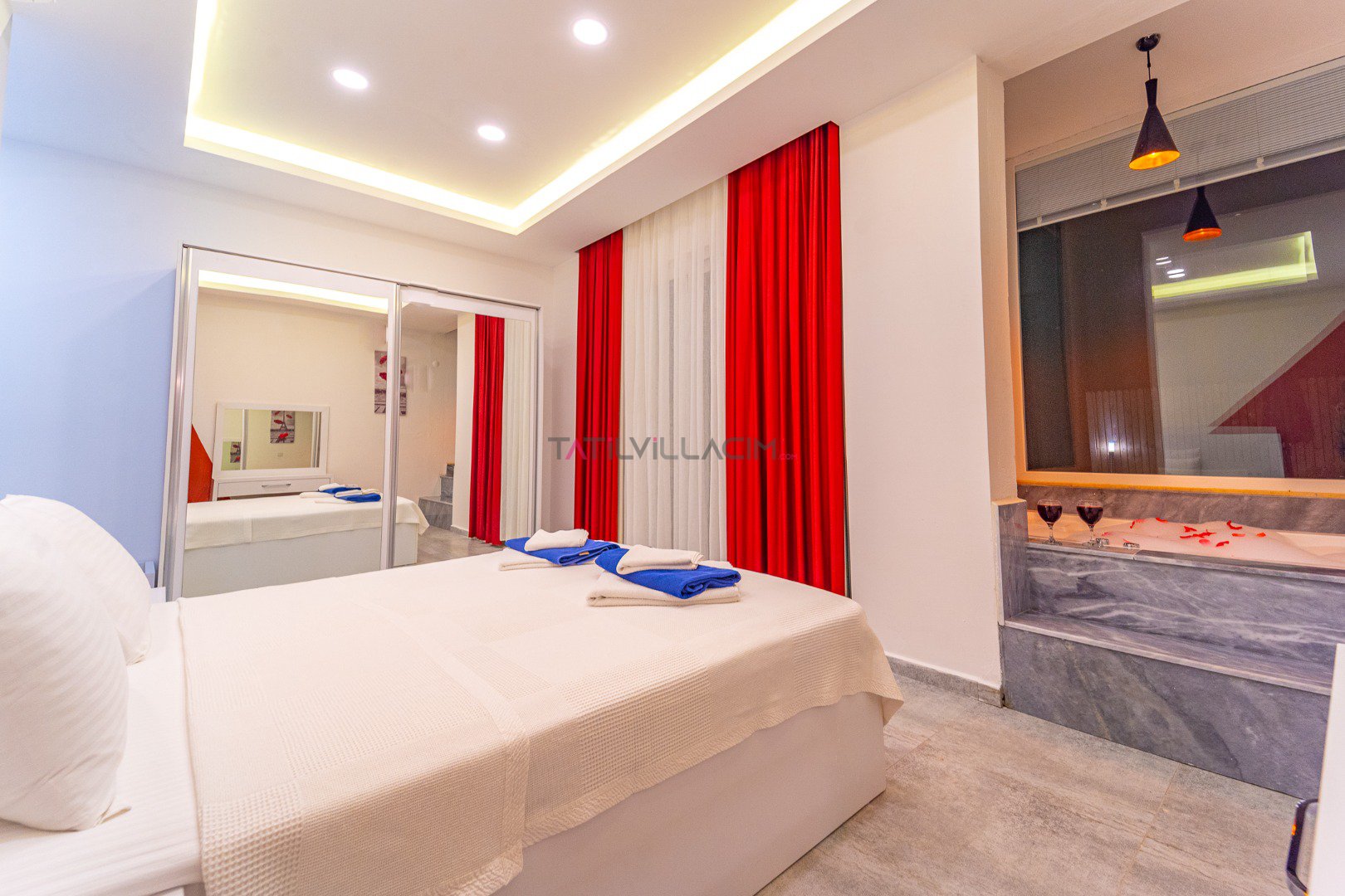 Kapasite:Modern ve şık tasarımıyla öne çıkan villa, 4 kişilik kapasitesiyle hem balayı çiftlerine hem de çekirdek ailelere uygun bir konaklama fırsatı sunar.